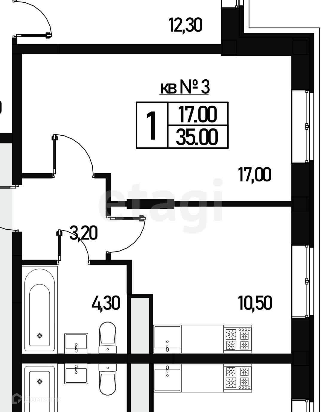 Общая площадь 35.1 м2