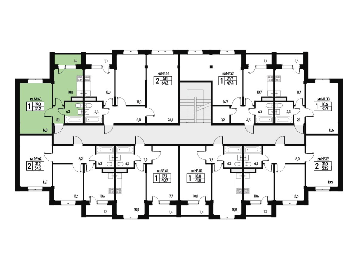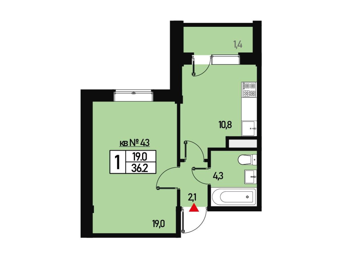 Общая площадь 36.2 м2
