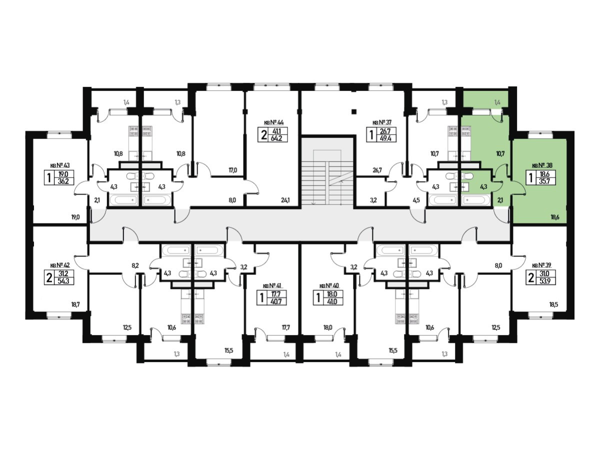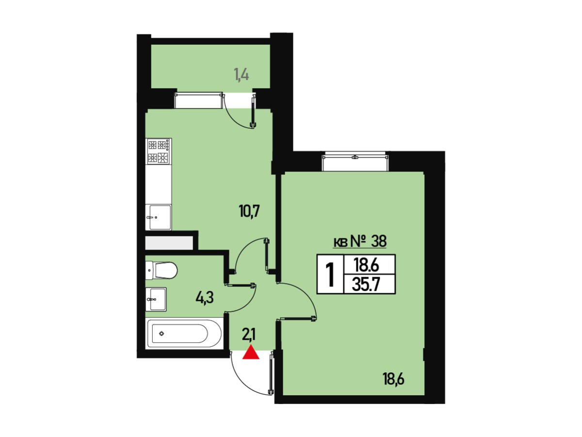 Общая площадь 35.7 м2