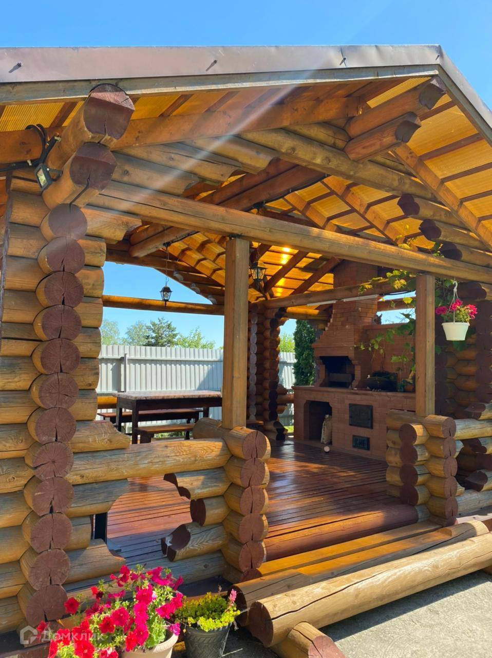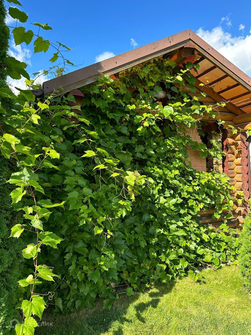 Участок 15 соток, ухожен, правильной формы. Есть подводка воды с реки для полива и других нужд. Летний душ. На территории отличная беседка с печью для мангала и казана, с электричеством. Также на территории участка есть баня, но она требует небольшого ремонта. На участке газон, груши, виноград, кусты смородины, стеклянная теплица, колодец, канализация.
