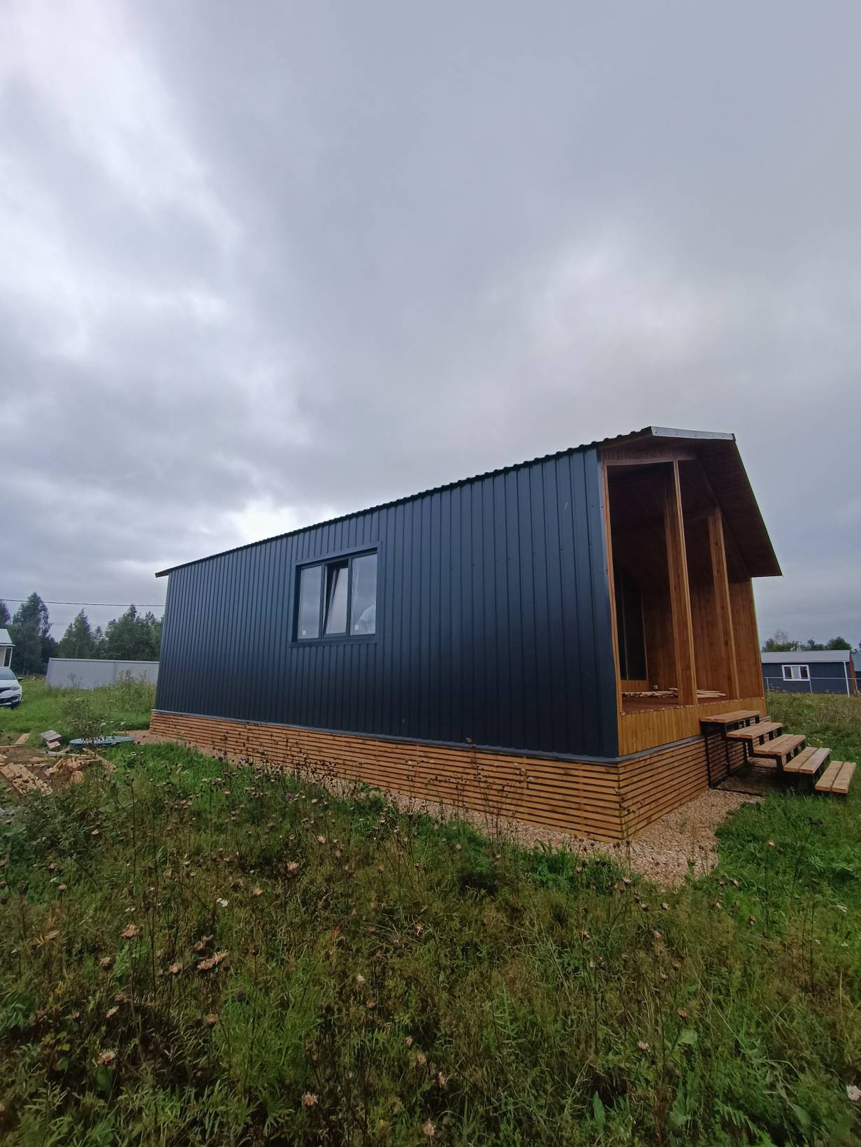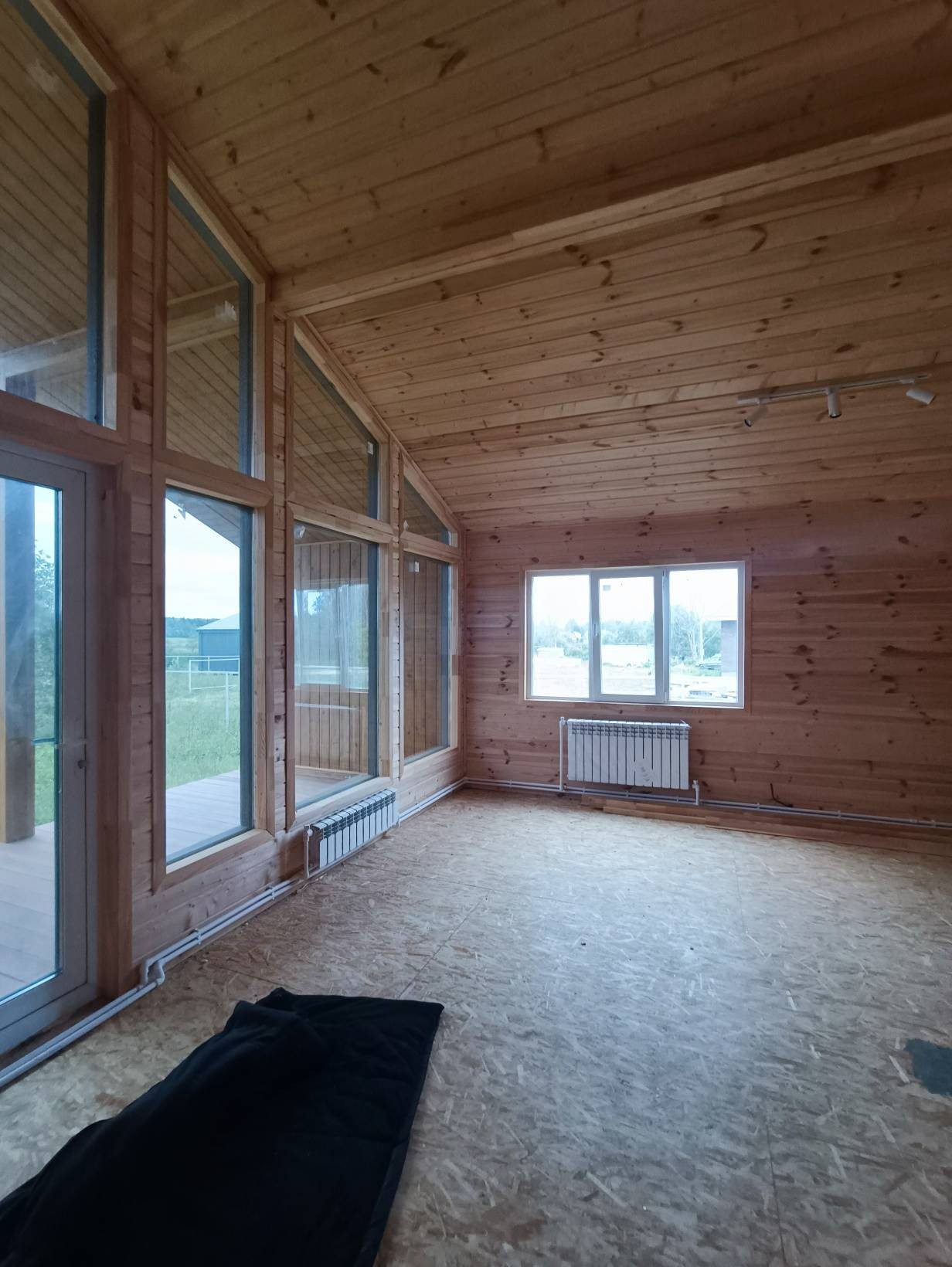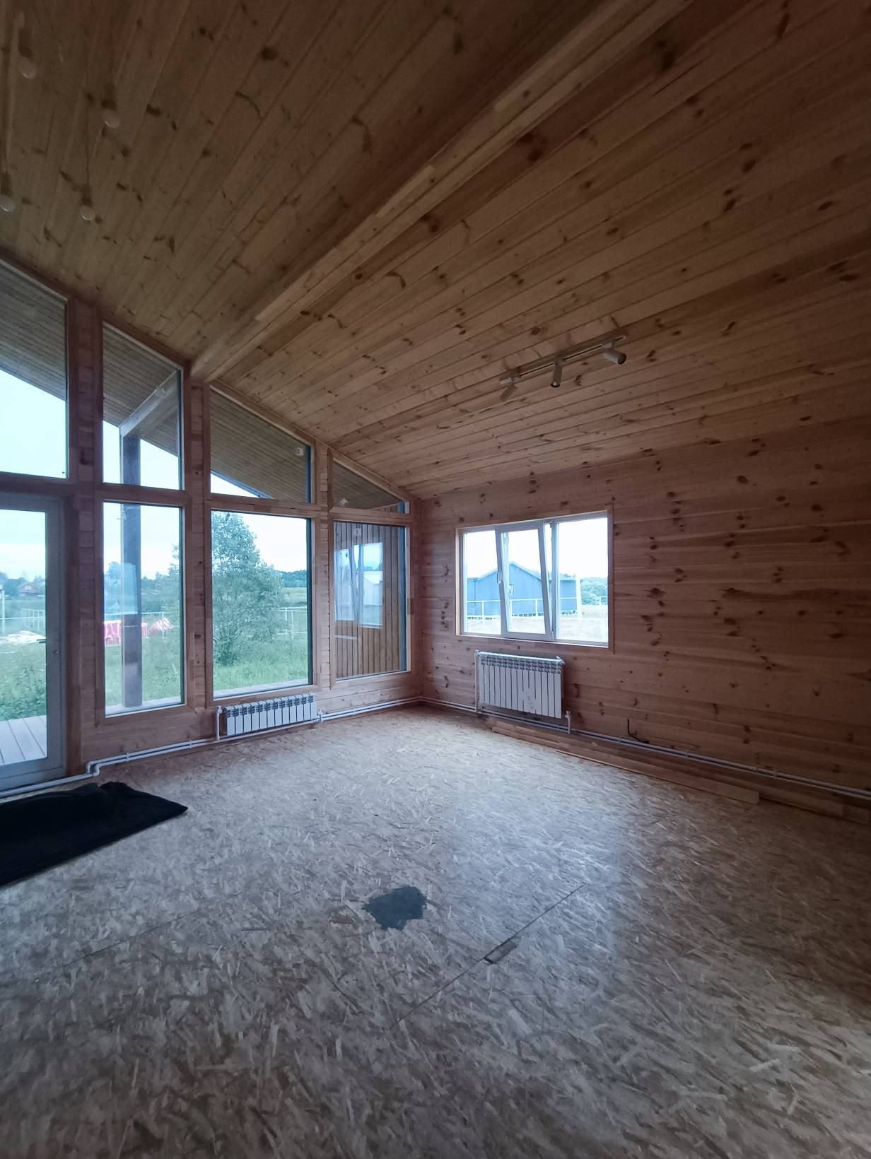 Жилой дом Талдомский район деревня Зятьково ДНТ Зятьково-Т. Дом для круглогодичного проживания щитовой, утеплен, общая площадь 85 кв.м., жилая 18 (10+8) кв.м., кухня-гостиная 30 кв.м. В доме все коммуникации: электричество, вода-скважина, канализация-септик, отопление-электрическое. Дом отделан вагонкой.