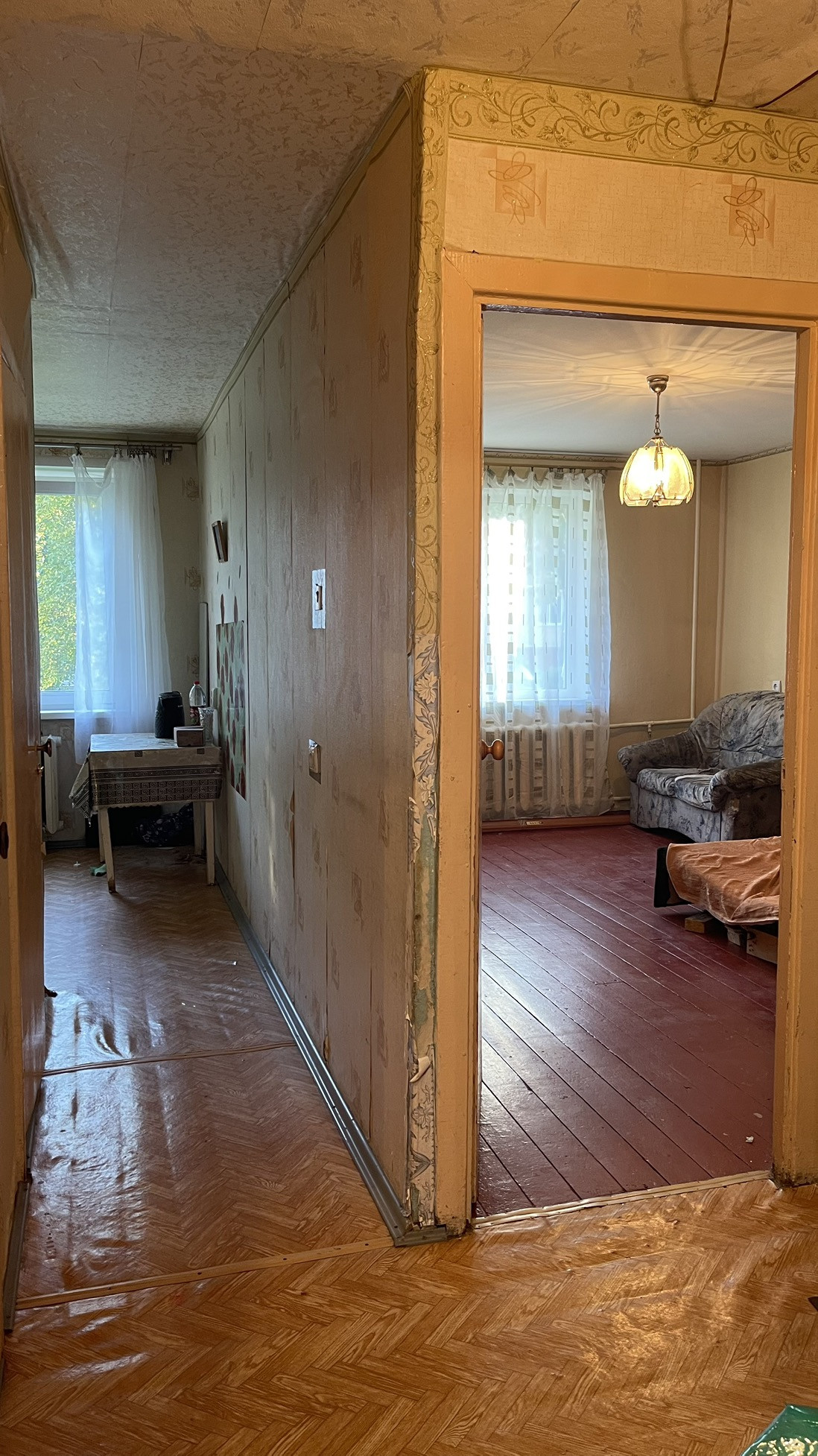 Продается квартира, требует ремонта. Установлены пластиковые окна и металическая дверь.