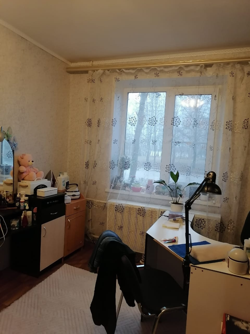 Везде стоят пластиковые окна, балкон застеклен стеклопакетами и обшит вагонкой, входная дверь железная, полы бетонные сверху залиты наливным полом, потолки натяжные в детской комнате потолок выровнян, в ванной комнате обложено плиткой. Рядом школа, детский садик и в 2х шагах магазинчик, так же поблизости автобусные остановки.