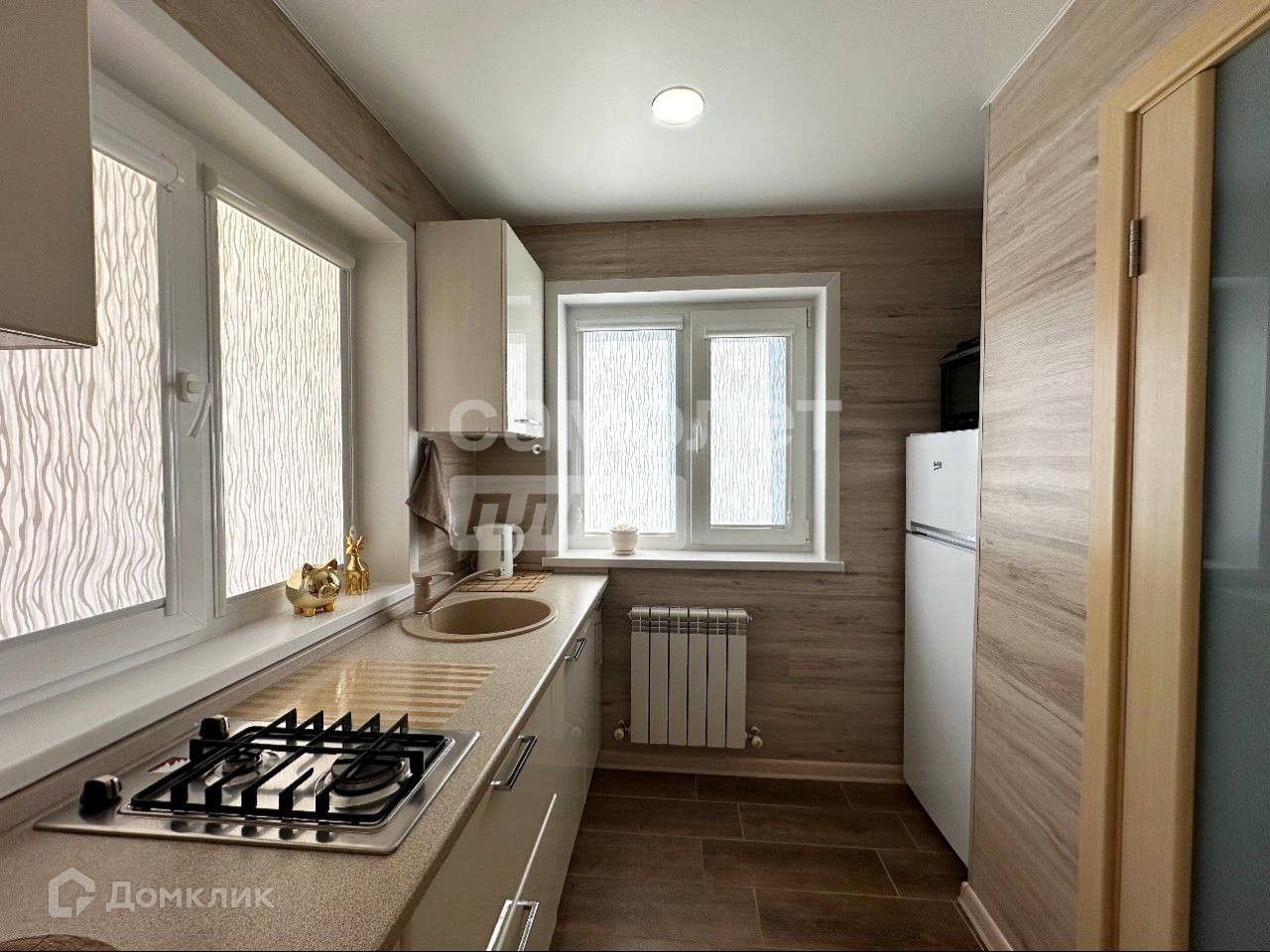 на первом этаже кухня со встроенным кухонным гарнитуром, раздельный санузел, изолированная спальня;