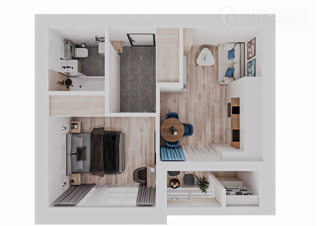 О квартире : Этаж : 3 Просторная отдельная кухня с лоджией и панорамным остеклением. Отделка : черновая Высота потолков : 2,70 м Общая площадь : 35,73 кв.м В каждой квартире предусмотрен магистральный фильтр для очистки воды.