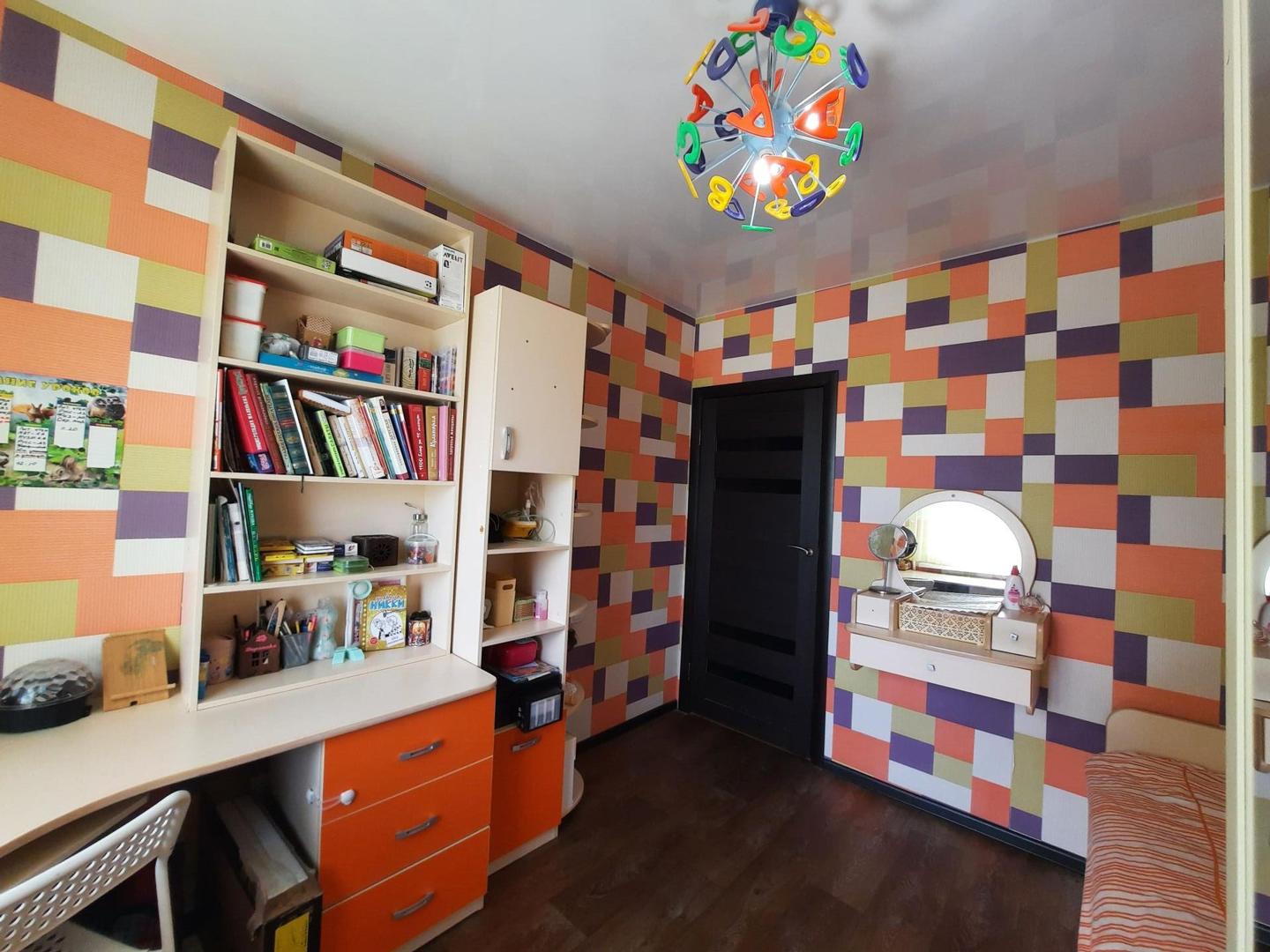 Во дворе есть детская площадка. Квартира не угловая, светлая, тёплая, уютная. Сделан капитальный ремонт- заменена электрическая проводка, выключатели и розетки опущегы под евро. Пластиковые окна, балкон застеклен пластиковыми окнами. Натяжные потолки во всех комнатах. Стены все выровнены, наклеины флизелиновые обои. На полу линолеум. Межкомнатные двери с покрытием ПВХ. Входная металлическая дверь с шумоизоляцией. Санузел раздельный,  заменены все трубы,  установлены счетчики,  выложена кафельная плитка. Есть кладовая.