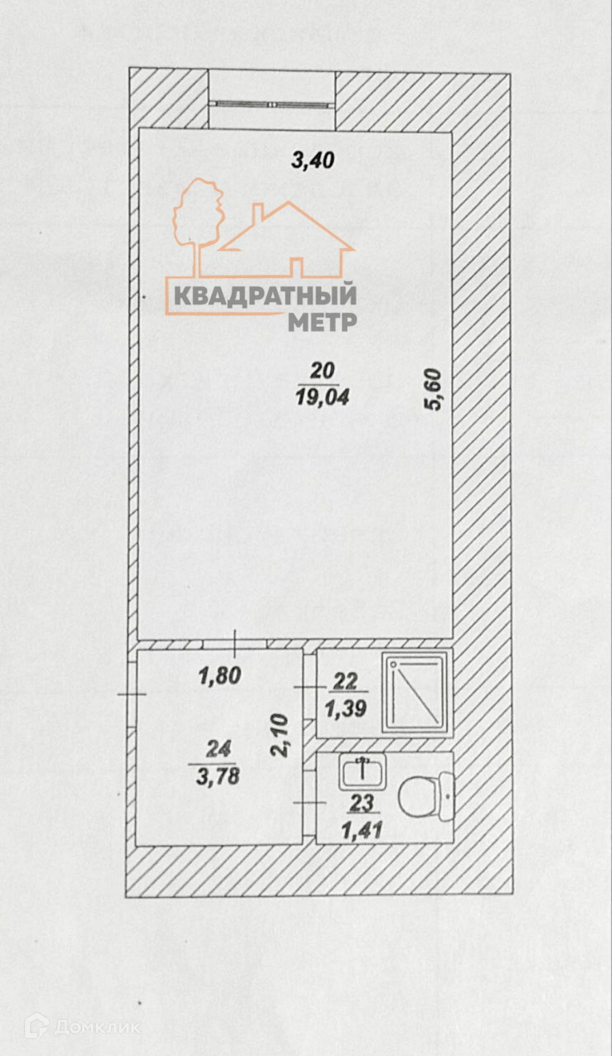 Общая площадь: 25,6 кв.м.