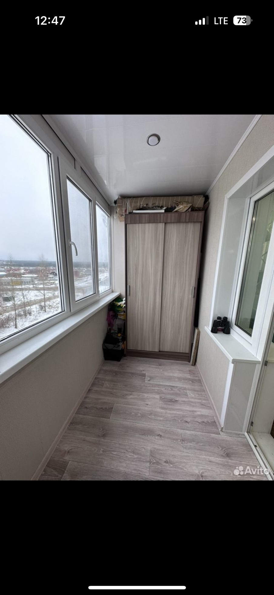 На балконе :столик  ,шкаф-купе .