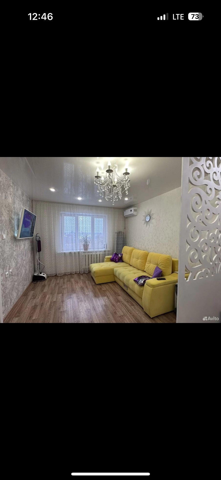 Зал : красивая перегородка для зонирования пространства в зале; кондиционер новый.