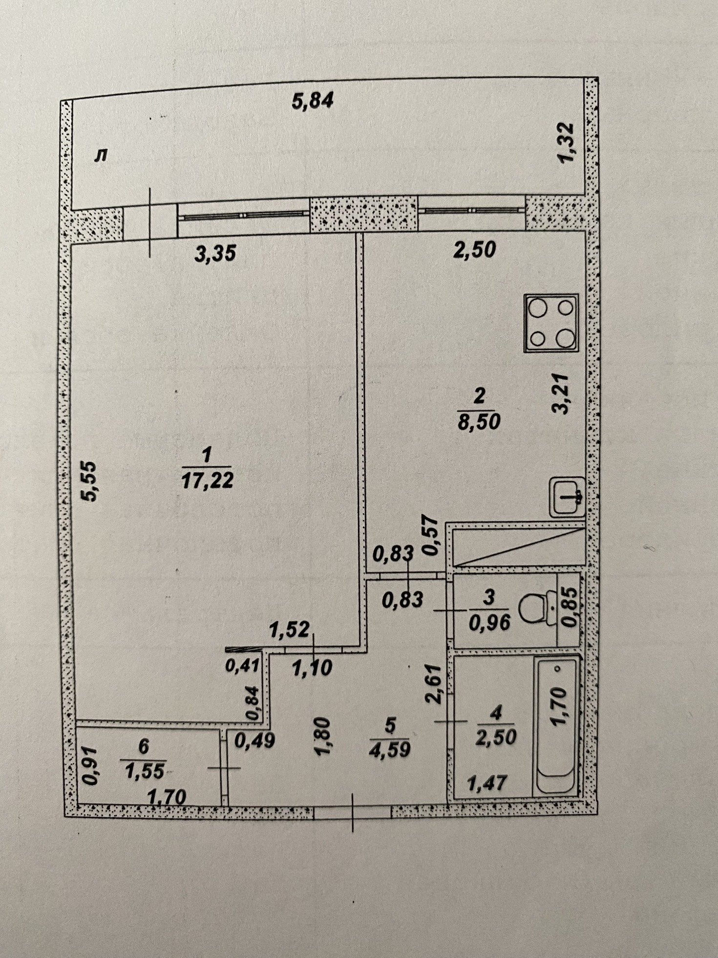Жилая площадь 17.22 м2