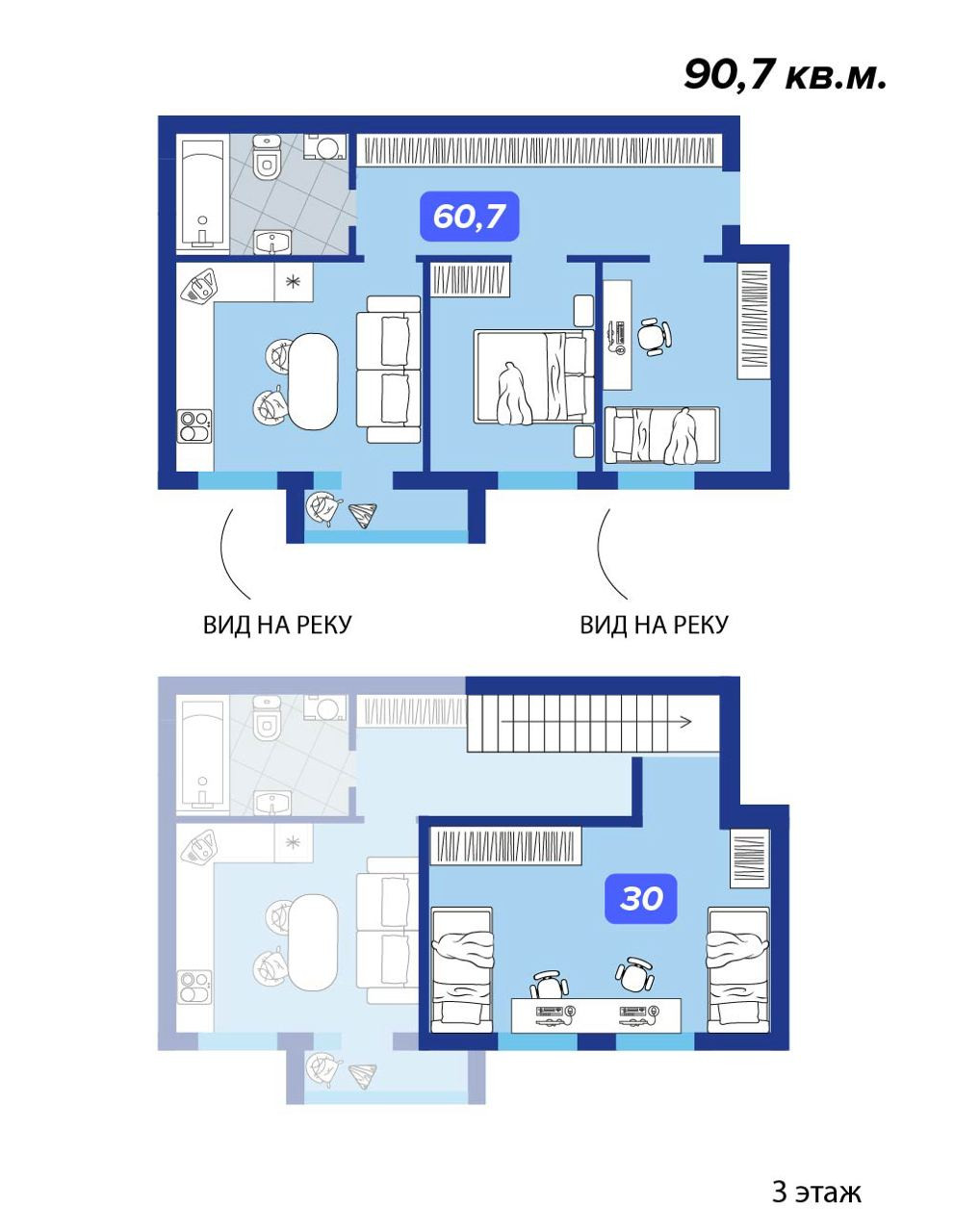 ДВУХУРОВНЕВАЯ КВАРТИРА c БОЛЬШОЙ ДЕТСКОЙ общей площадью 90,7 м², где есть все для комфортного проживания.