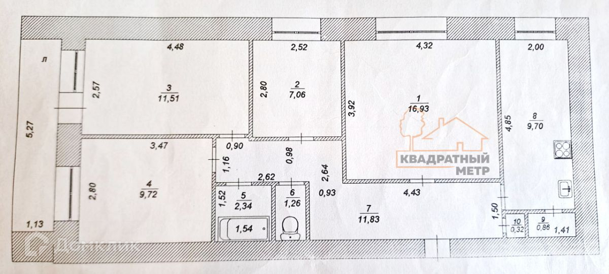Площадь кухни 9.7 м2