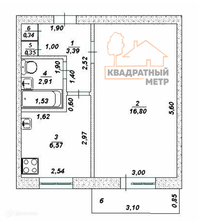 Общая площадь: 30,4 кв.м.