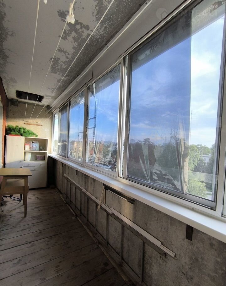 Большая лоджия на два окна 5,8Х1,3 кв.м. остеклена новой пластиковой рамой. Оена деревянные.