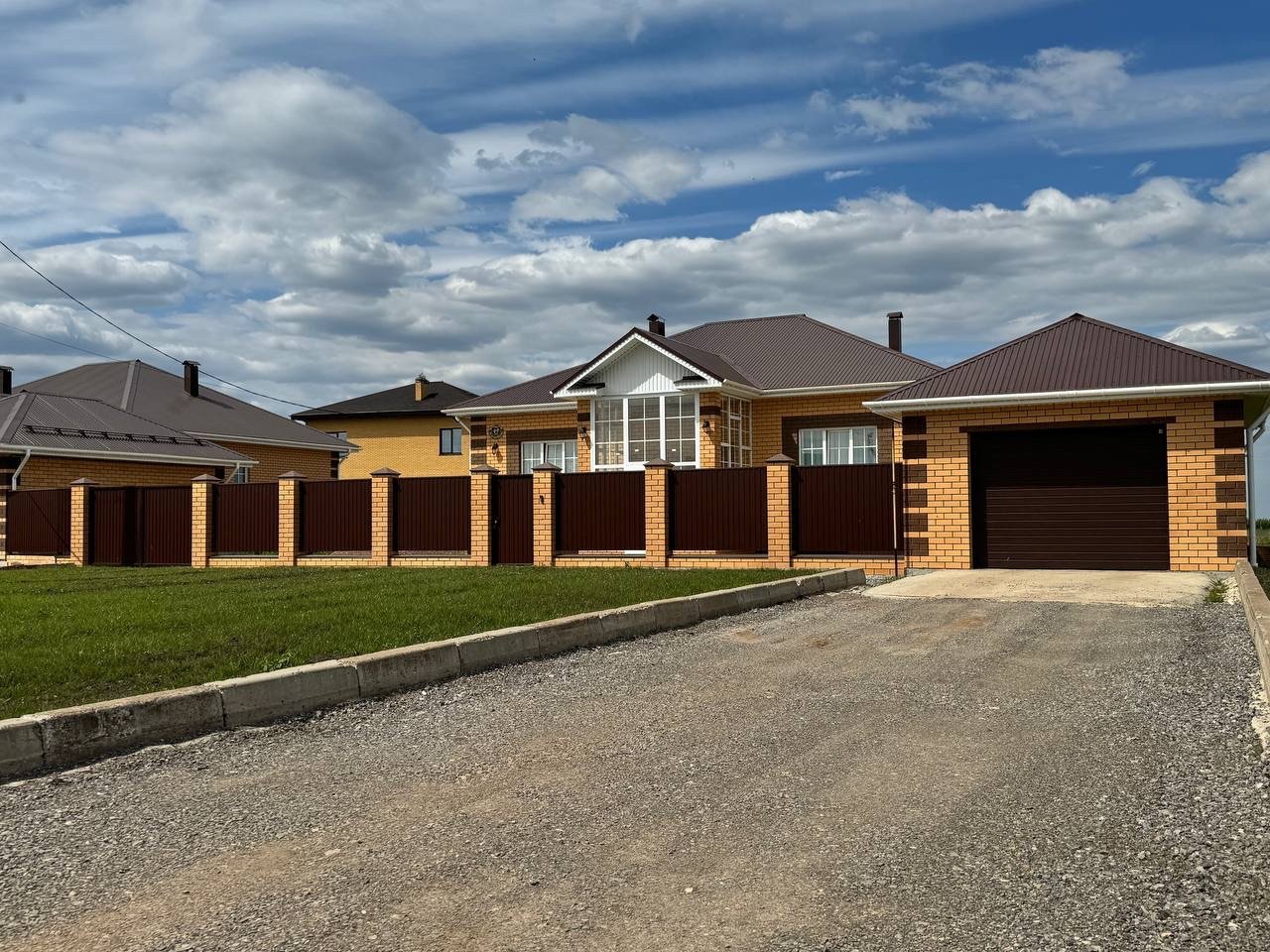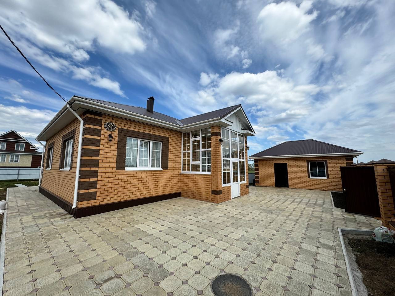 Участок облагорожен, со всех сторон огражден забором, во дворе и вокруг дома постелена брусчатка.