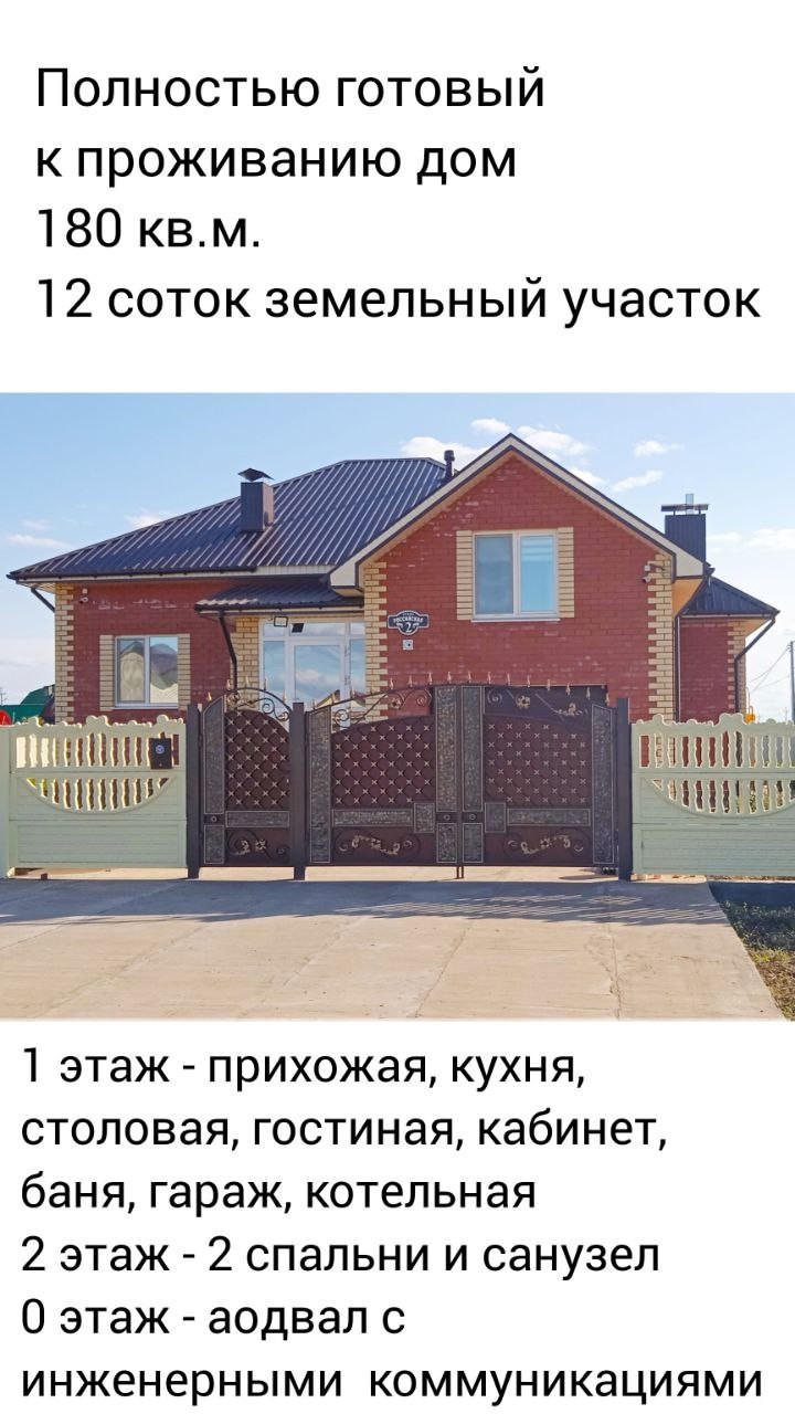 Дом 180 кв.м, готовый к проживанию, полностью мебелированный. Земля 12 соток в собственности. Стены кирпич облицовочный Алексеевский, утеплитель газобетон, внутренний кирпич полнотелый Чайковский. Окна Рехау 70. На крыше профнастил 21 шоколад. Кровля утепленная Эковата.