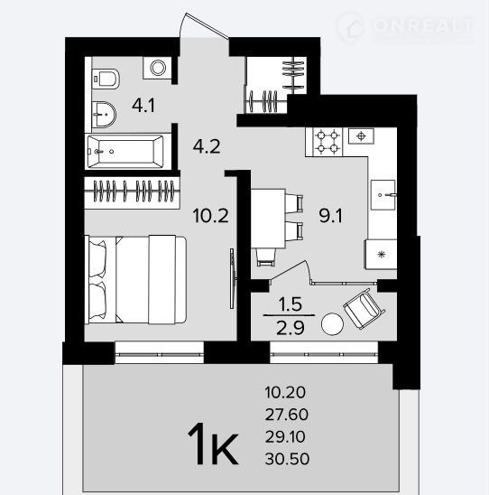 — Общая площадь 29,1 кв.м.;
