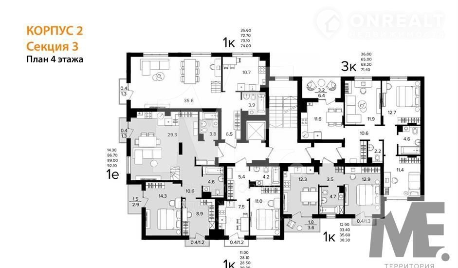 Общая площадь 89 м2