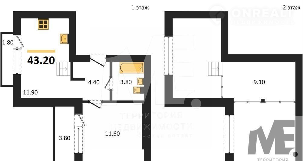 Общая площадь 43.2 м2