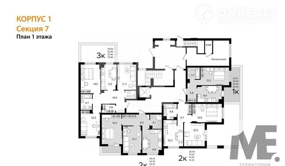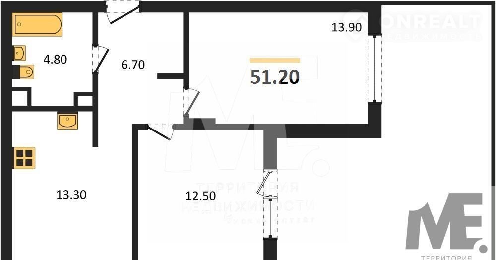 Общая площадь 51.2 м2