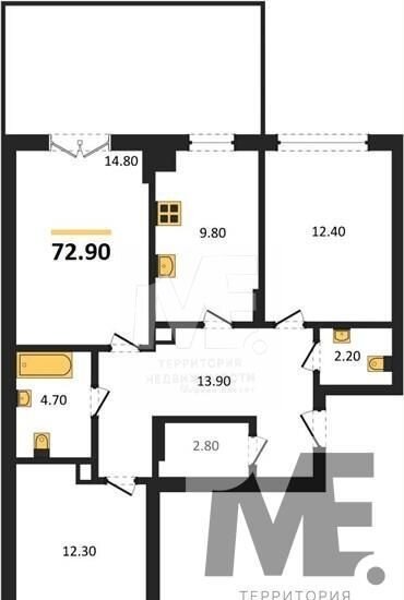 Общая площадь 72.9 м2