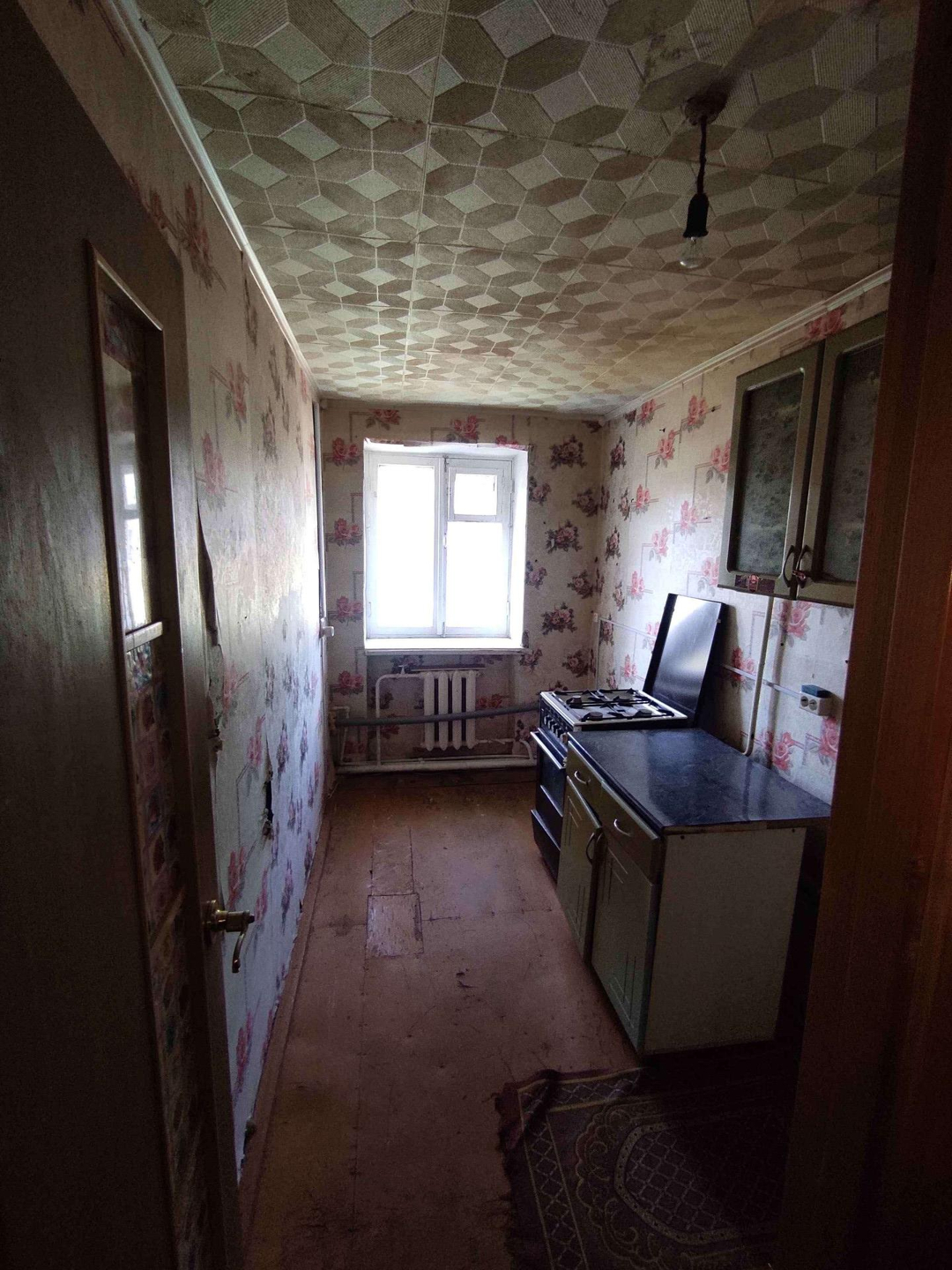 продается однокомнатная квартира на первом этаже. без ремонта. перед домом есть маленький участок 3х10 метра. без торга