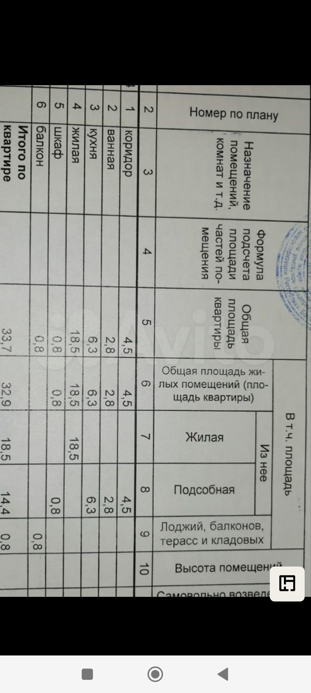 Общая площадь 32.9 м2