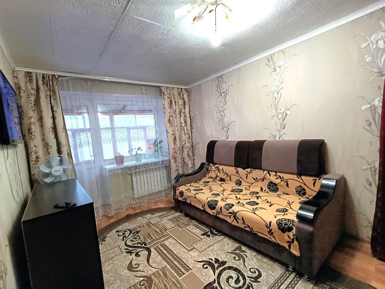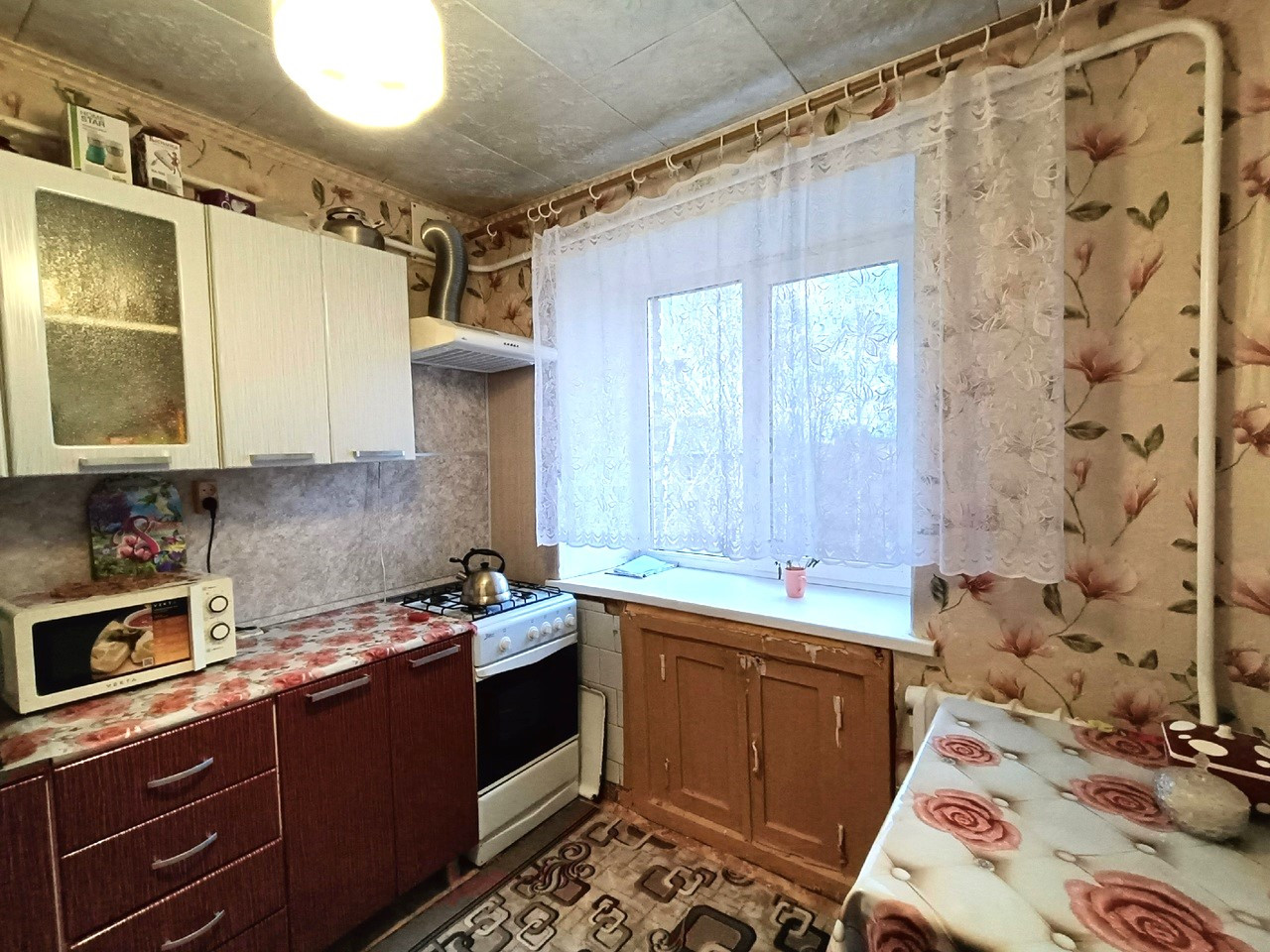 Площадь 30кв.м., пвх окна, застекленный балкон, полы линолеум.