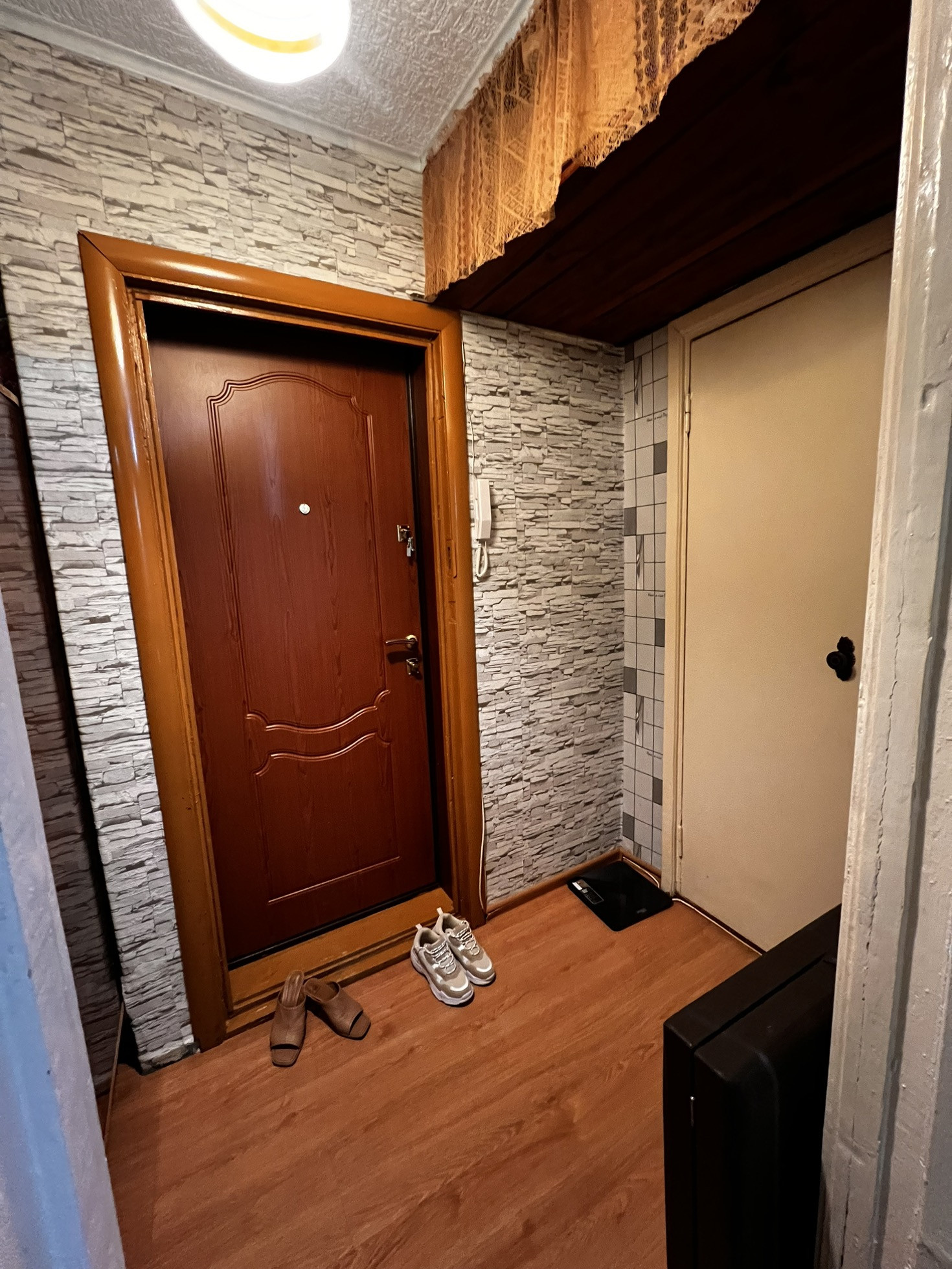 Продается 1-комнатная квартира по улице Первомайская, дом 24, этаж 4. Площадь 28.4м2. Балкон есть, имеется гардеробная. Санузел совмещенный. Окна смотрят на 4 школу.