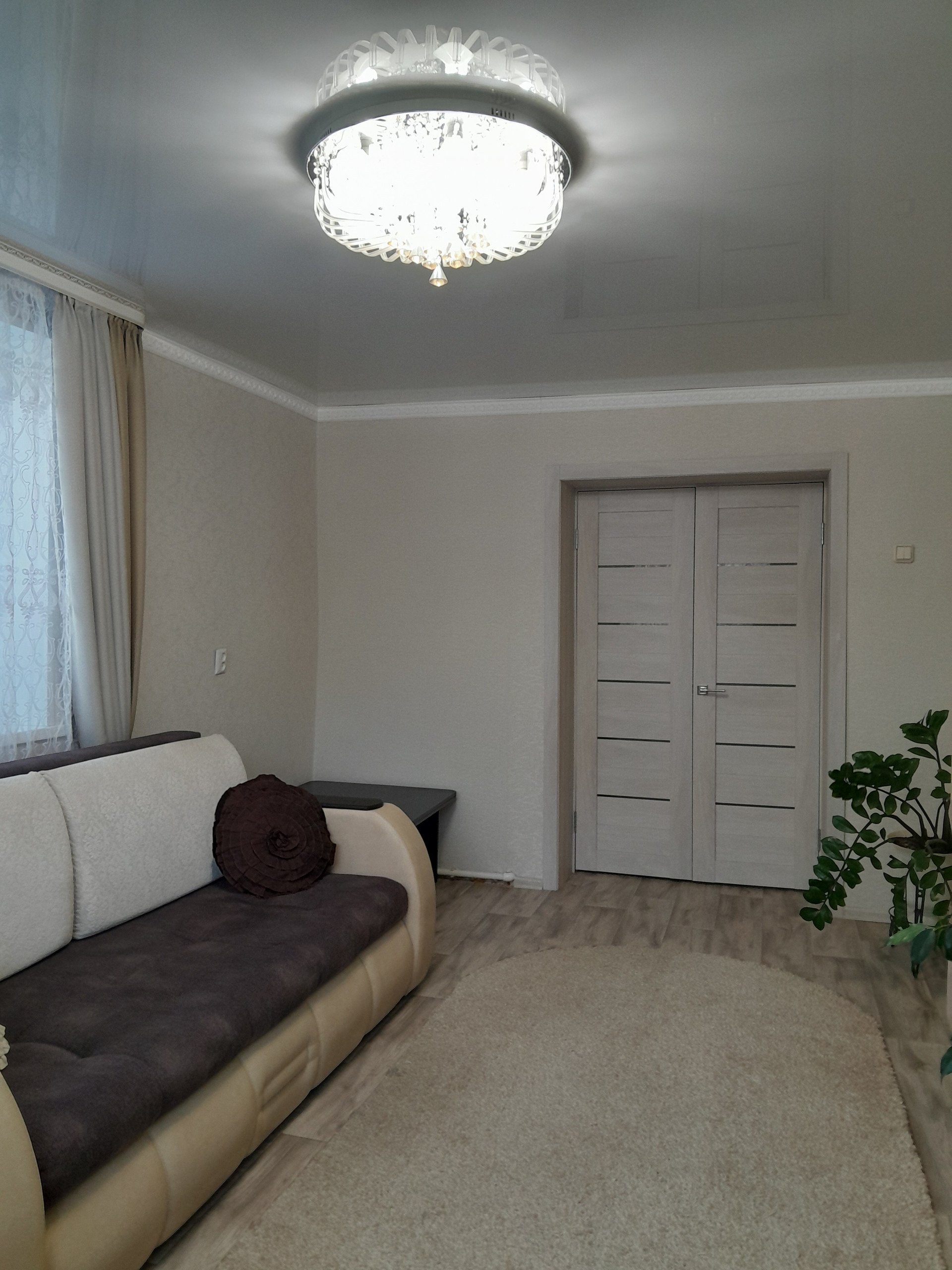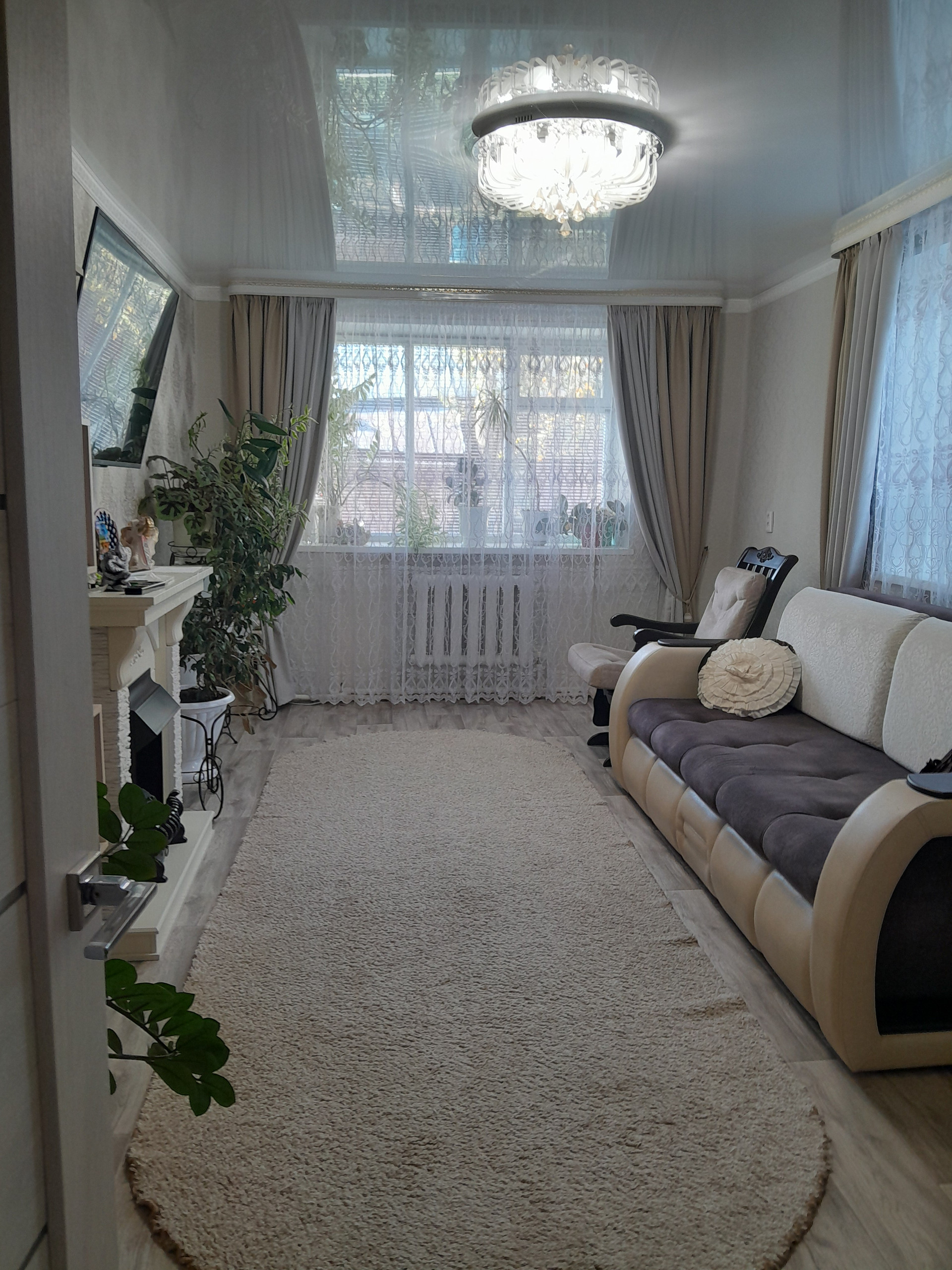 Квартира имеет продуманную планировку: жилая площадь составляет 54.8 квадратных метров, а кухня — 8.6 квадратных метров. Здесь достаточно места для комфортного проживания семьи.Имеется:баня,гараж,летний домик,2 теплицы,сарай,подвал,погреб.Индивидуальное газовое отопление,центральное водоснабжение.Живешь в квартире,а удобства и красоты как в частном доме.