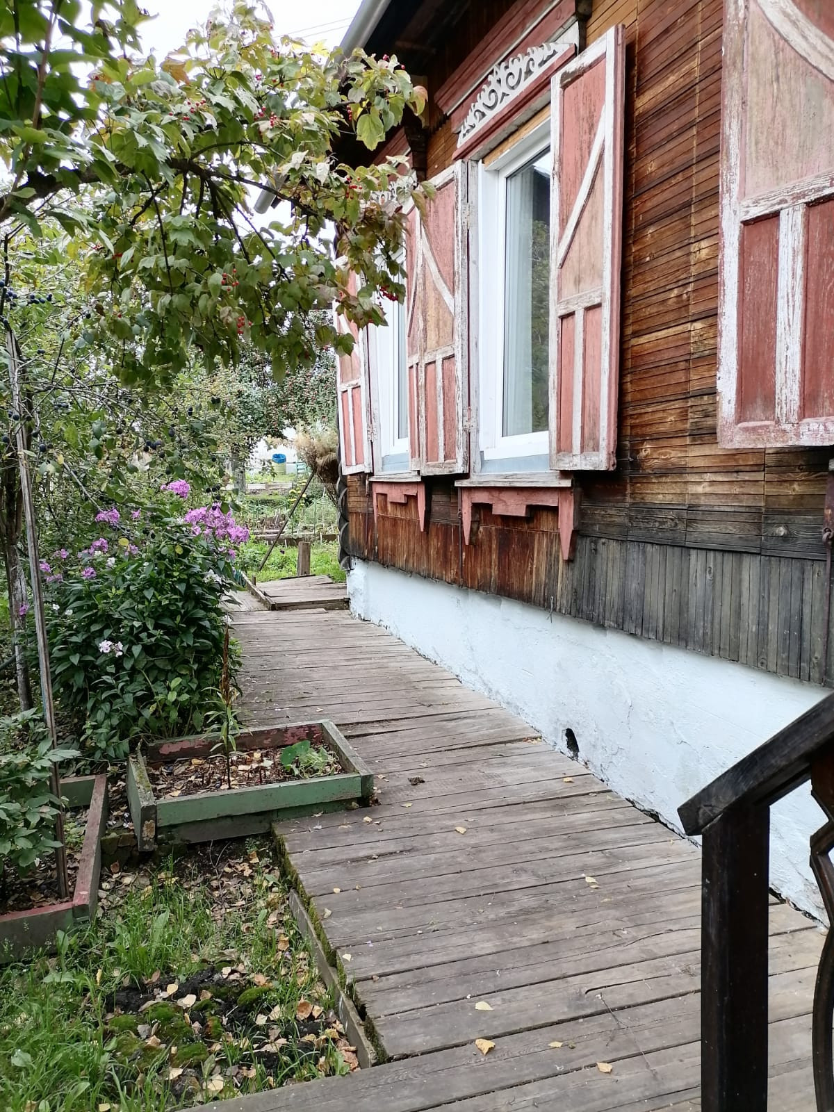Две теплицы, много насаждений и кустарников. Растут: ранетка, слива, рябина, калина, смородина, малина, виктория, и много-много цветников.