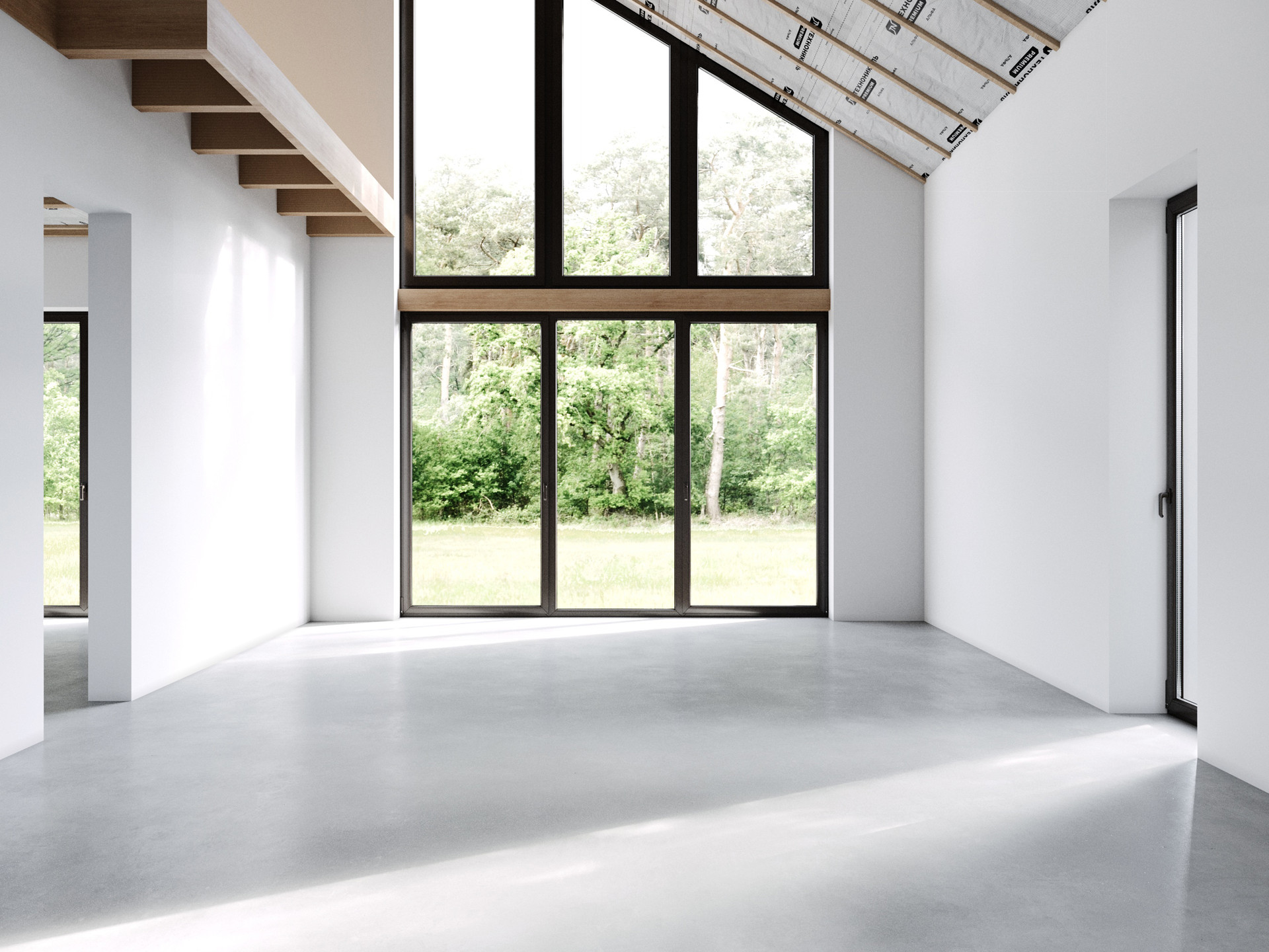 - Просторная кухня-гостиная с двухсветным пространством, высокими потолками до 5,5 м. и выходом на террасу;