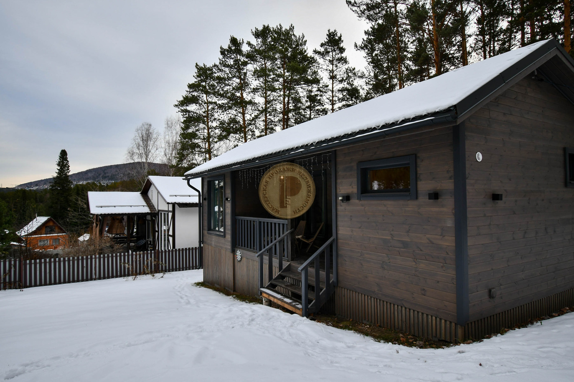 Вся территория по периметру огорожена современным забором . В доме легко разместиться дружная семья . Здесь все предусмотрено для комфортного проживания , инфракрасные полы с подогревом , панорамные окна от потолка до пола , сибирская баня, которая расположена внутри дома .