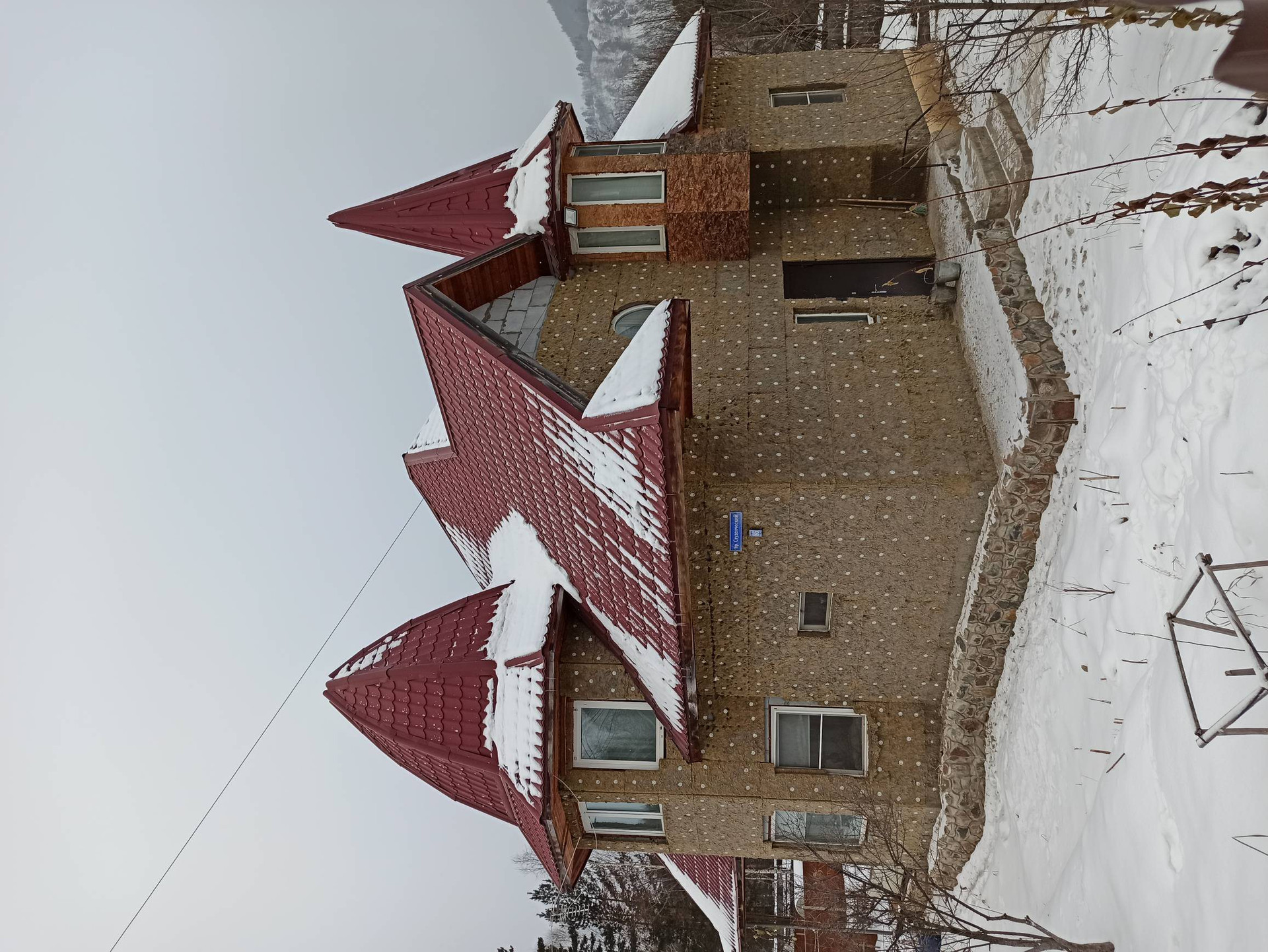 Коттедж, проспект Студенческий, д.86. Дом из газобетона, кровля металлочерепица. Три входа, один центральный, второй с огорода, третий с гаража.