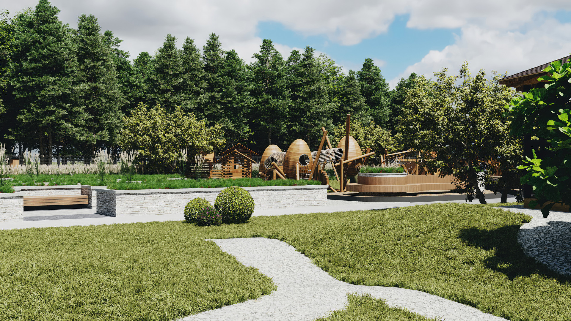 Мы строим единую инфраструктуру, за которой будет тщательно смотреть собственная управляющая компания! Организуем круглосуточно охраняемую территория, въезд через КПП, полностью асфальтированные дороги. Прогулочные тропинки и велодорожки. Детские площадки и парки. А главное вокруг сохраняем красивейший лес!