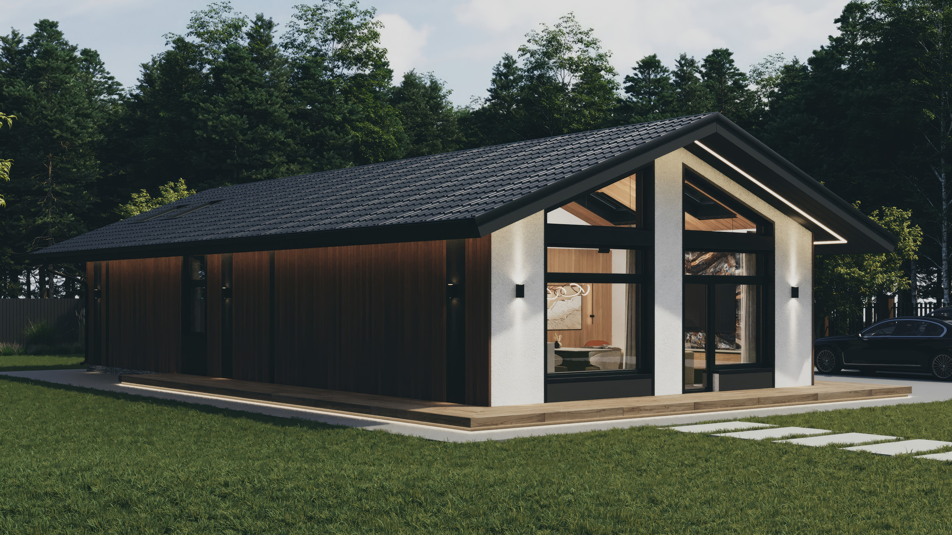 Высокие потолки и витражное остекление дает вам дополнительное пространство и больше дневного света. Свободная планировка дома поможет реализовать все пожелания к интерьеру.
