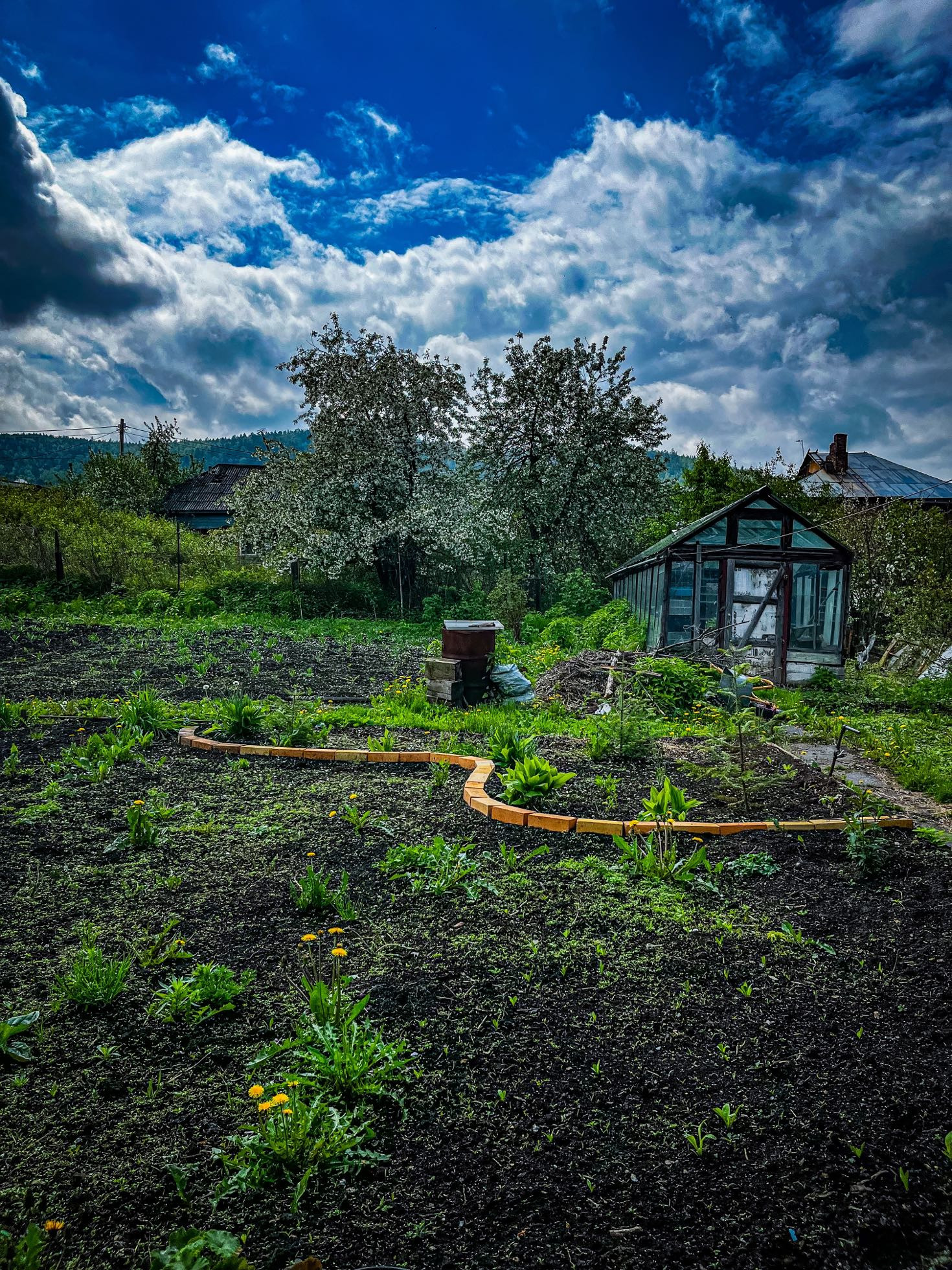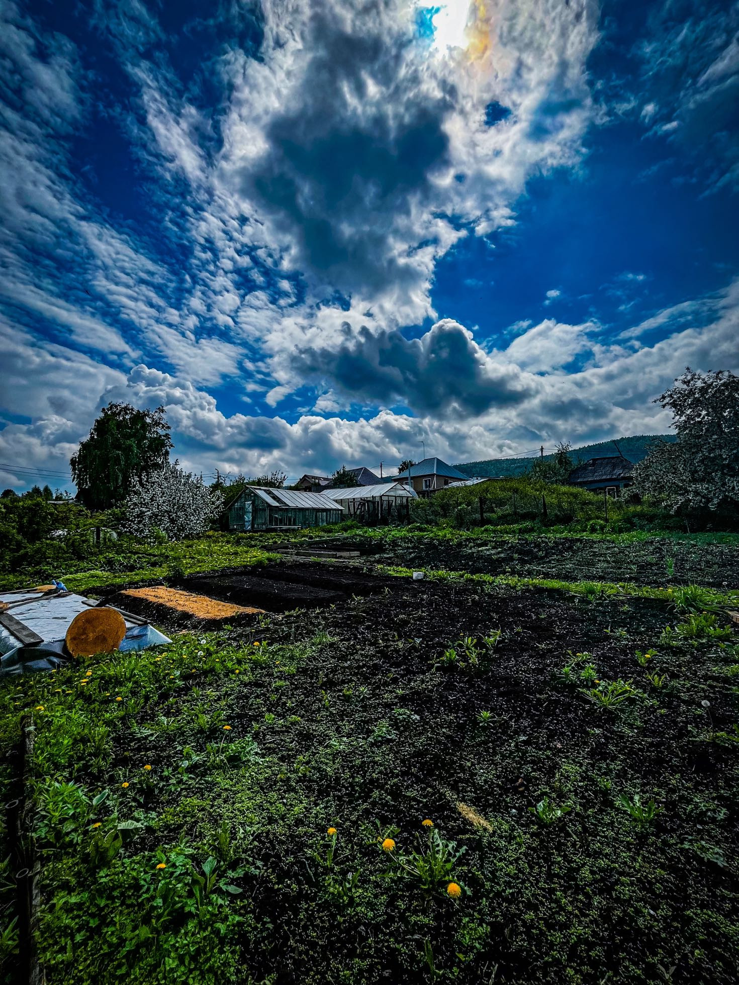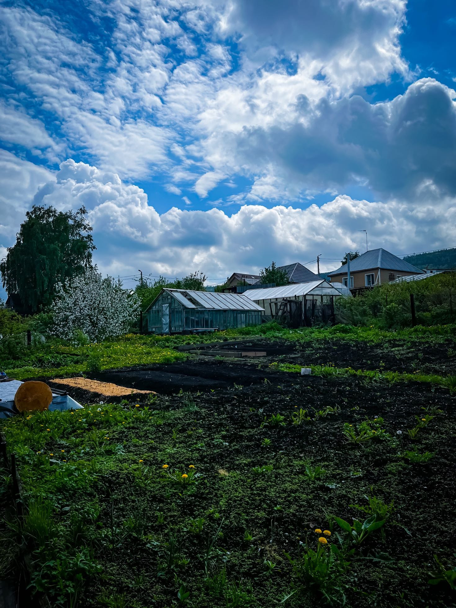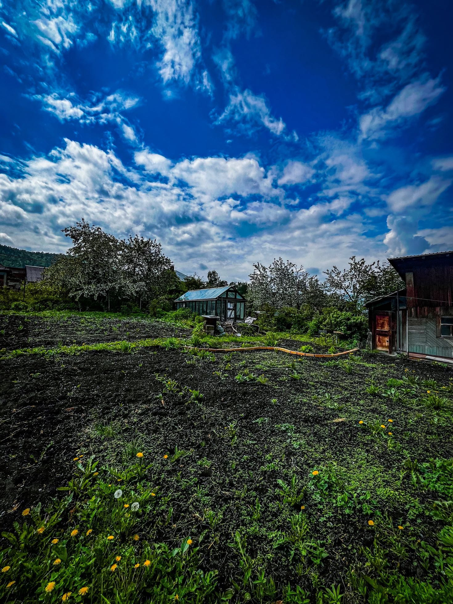 12 соток, баня, гараж, угольник, сарай, две теплицы.