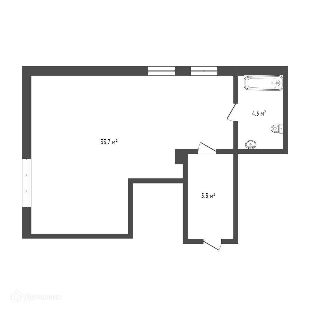 Общая площадь 43.5 м2