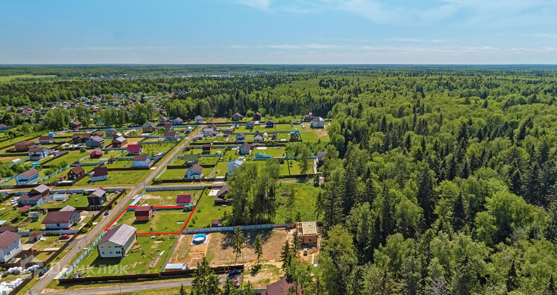 В планировке дома: 1 этаж прихожая, кухня-гостинная, совмещенный с/у, 2 этаж Спальня, большой коридор с выходом на балкон (можно сделать 3ю комнату). Вид из окон на участок и на лес.