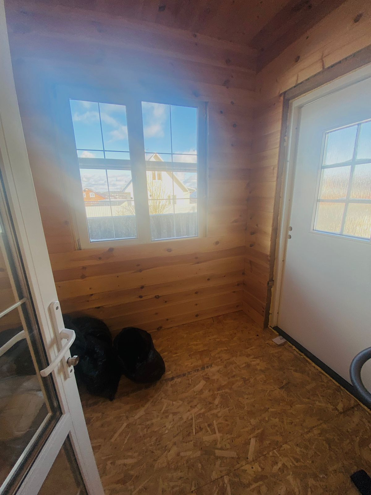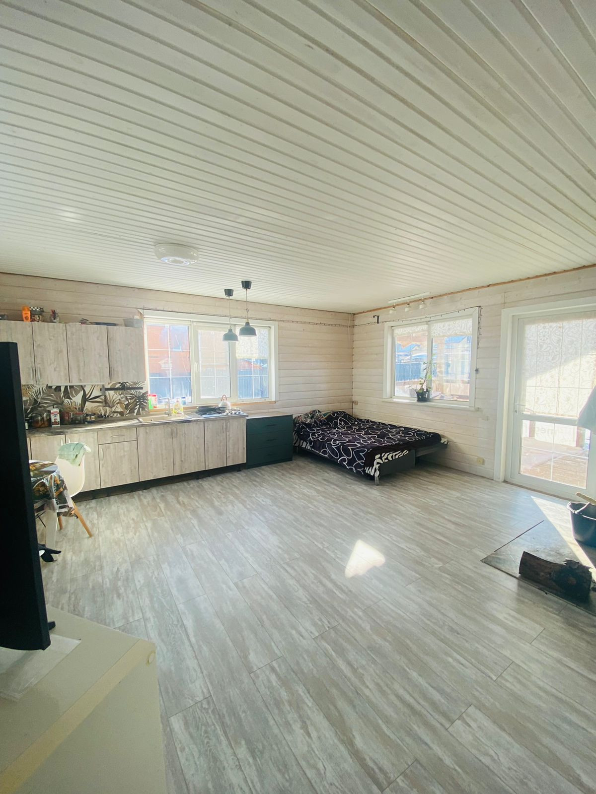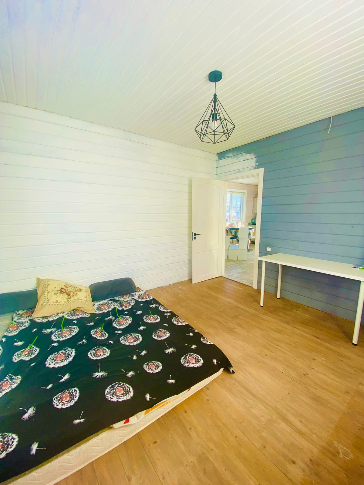 1-й этаж-веранда, кухня-гостиная, комната, с/у совмещённый, бойлерная,  2-й этаж под свободную планировку и отделку.