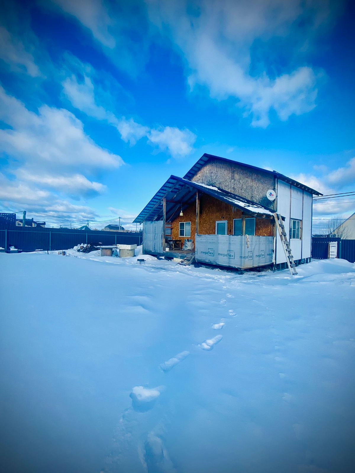 дом каркасный, утеплитель 250. Стоит на усиленных сваях.