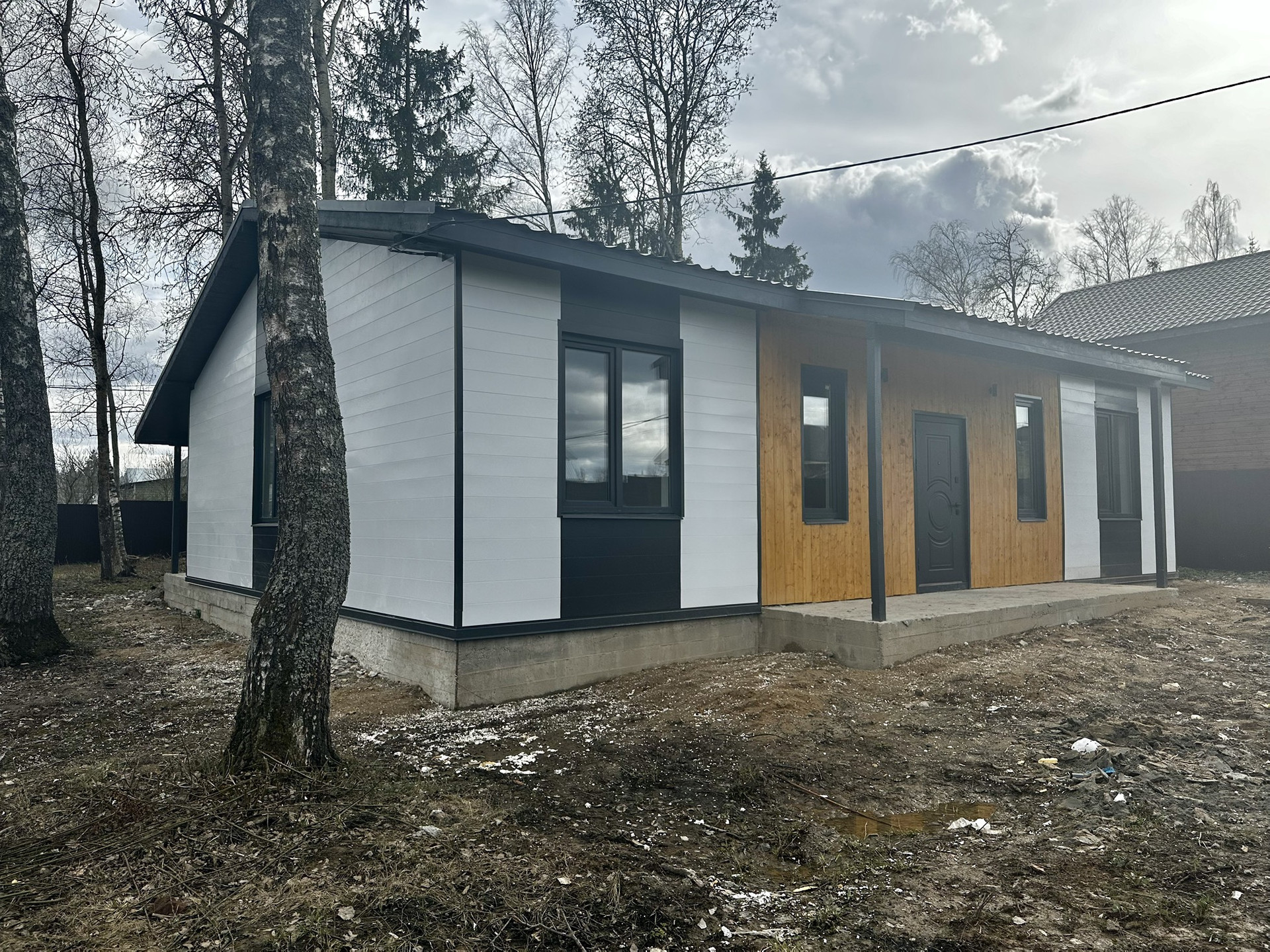 Планировка: Большая прихожая, техническое помещение, 3 спальни, кладовая, 2 с/у, кухня+гостиная с выходом на веранду