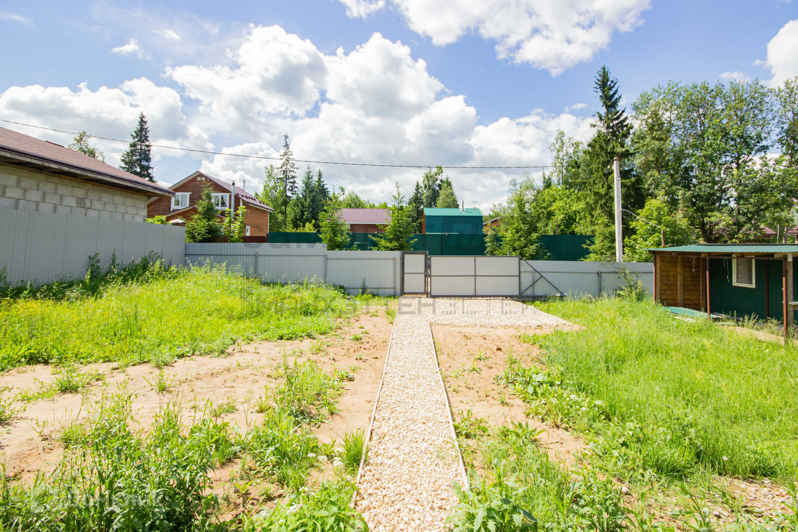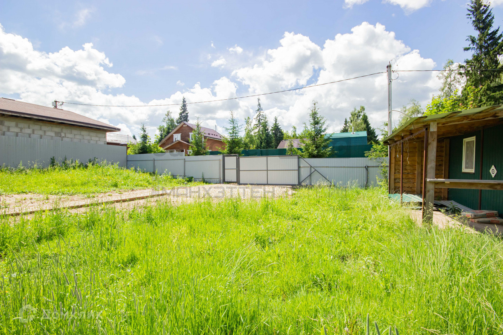 Участок огорожен: профлистом;