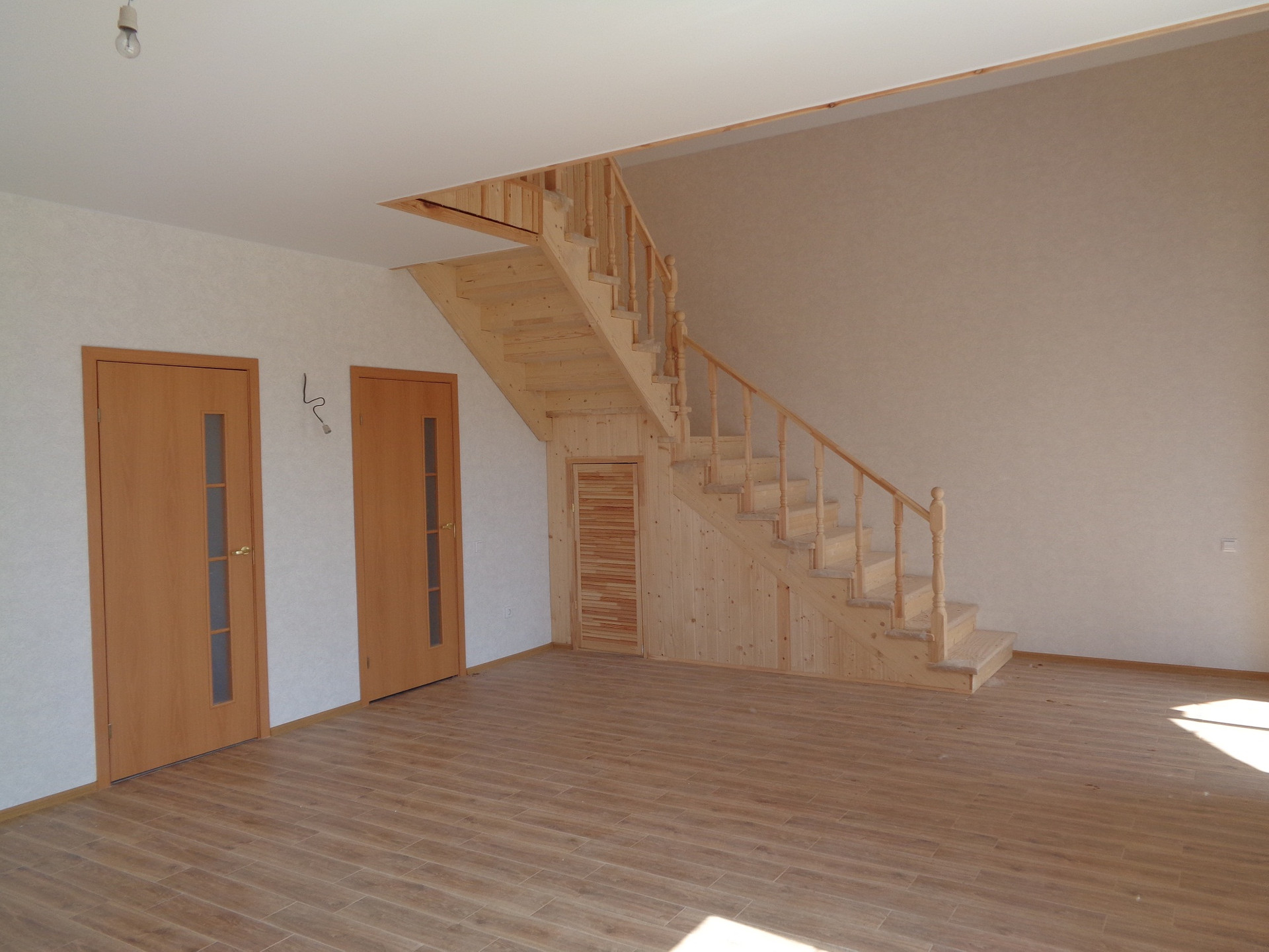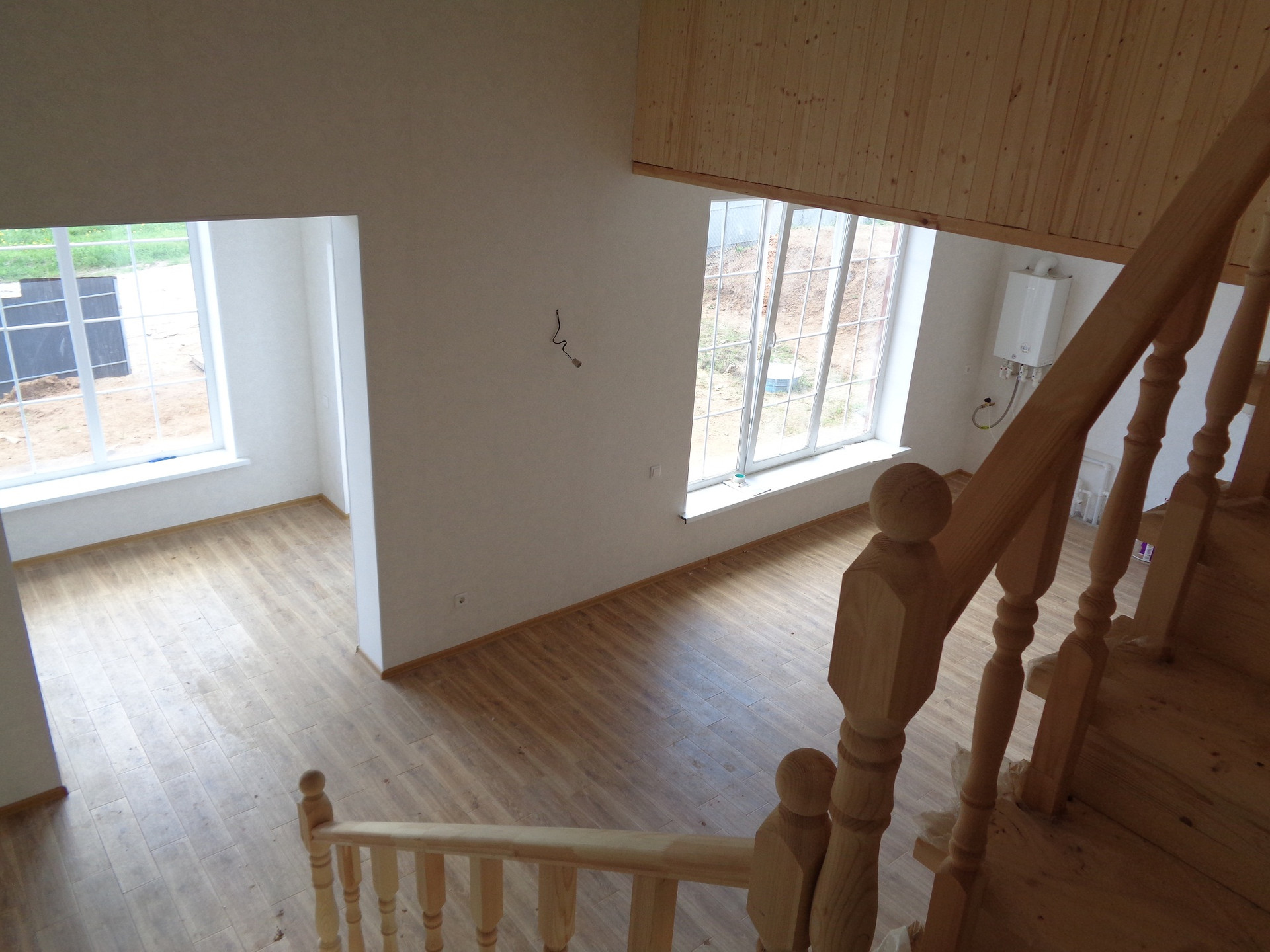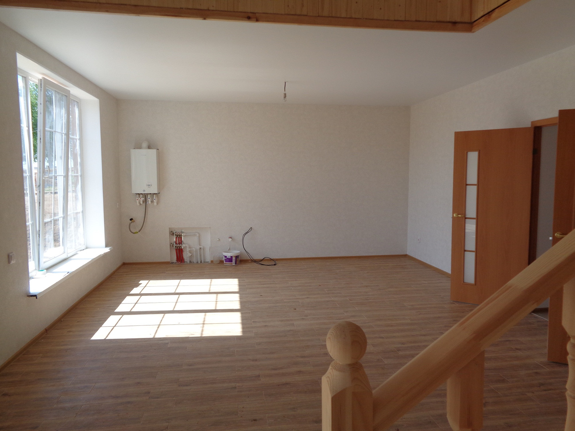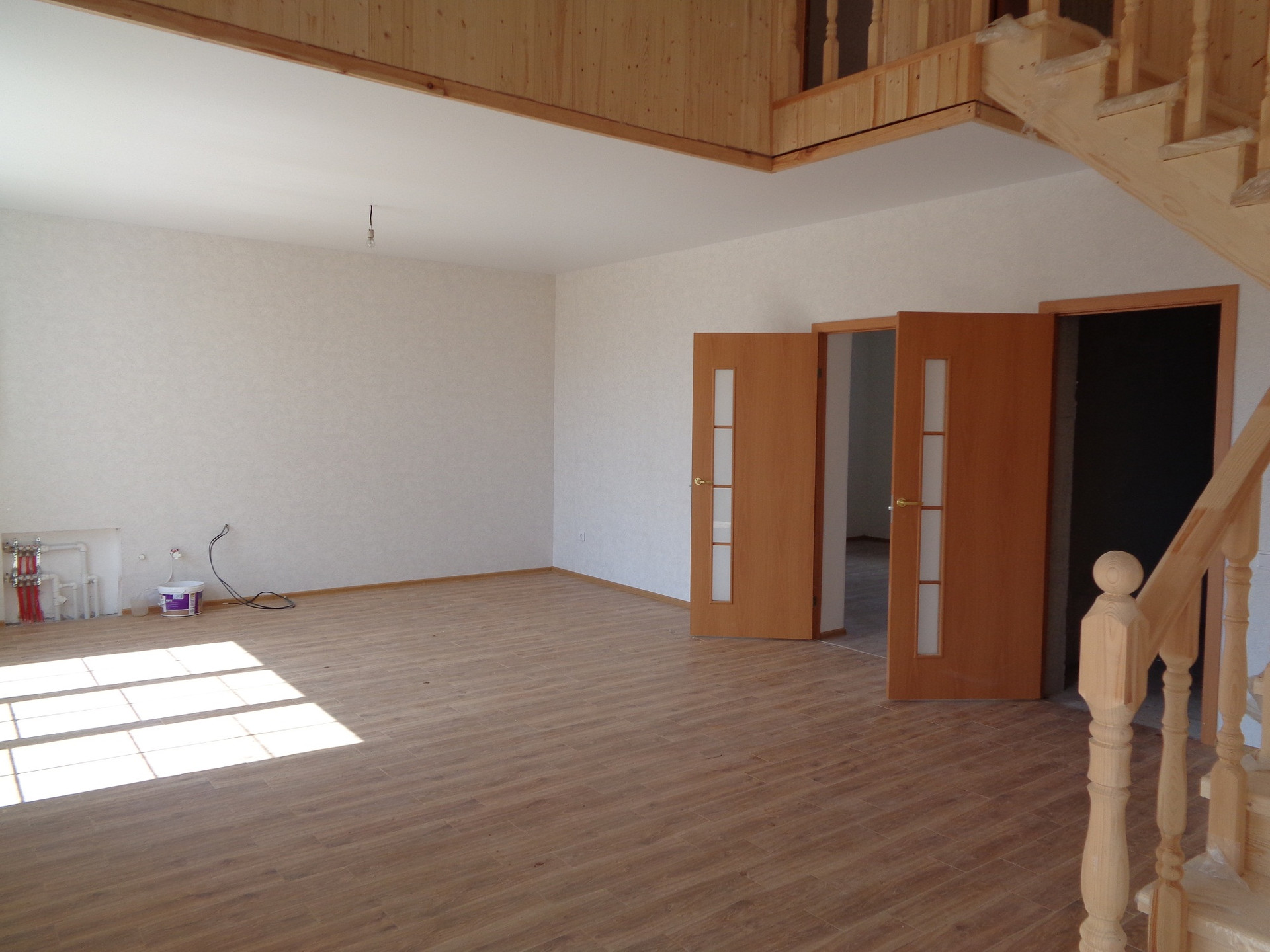 •    Внутренняя отделка, межкомнатные двери, натяжные потолки, ламинат и керамическая плитка на полу. Система «теплый пол» на первом этаже.