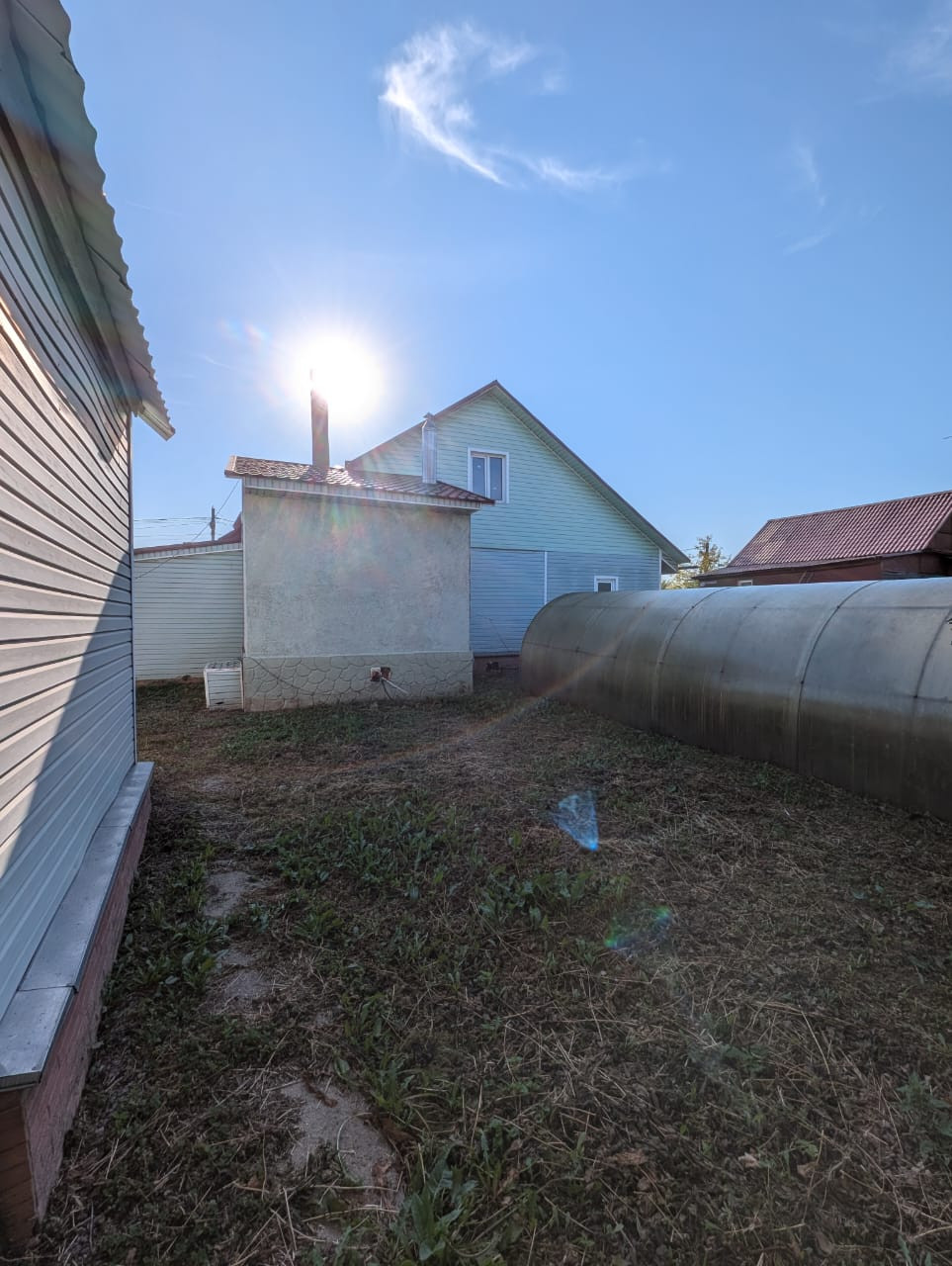 Строился для себя на ленточном фундаменте из качественного бревна и бруса с дополнительным утеплением плюс сайдинг. Пристройка газоблоки. Кровля НОВАЯ-металлочерепица. Качественные пластиковые окна.