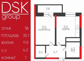 Общая площадь: 35.7 м2