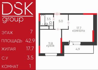 Общая площадь: 42.9 м2