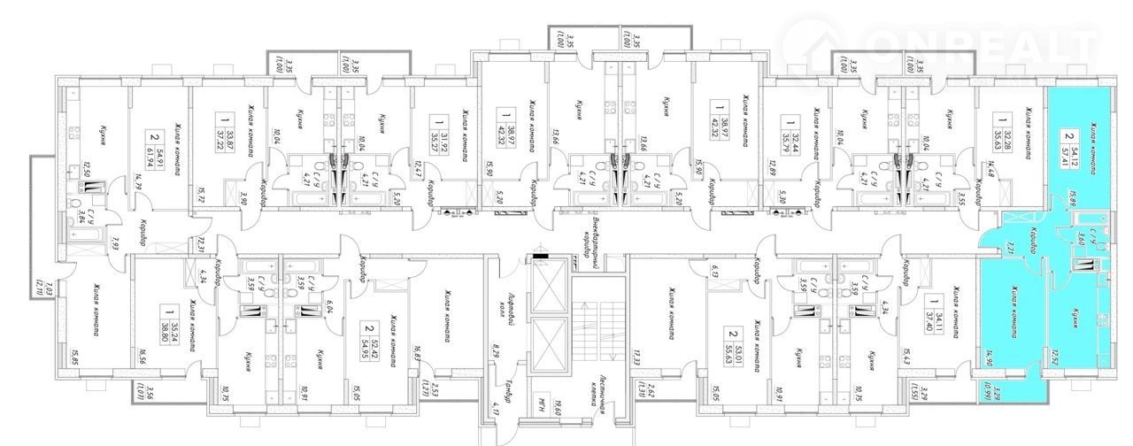 Общая площадь 57.4 м2