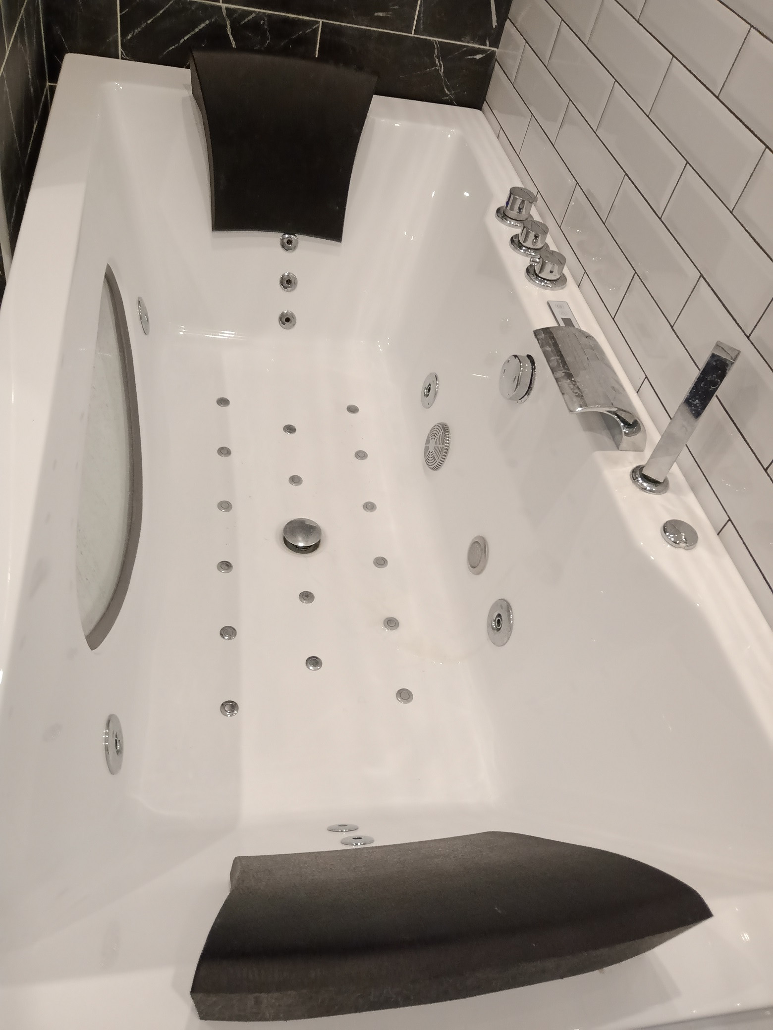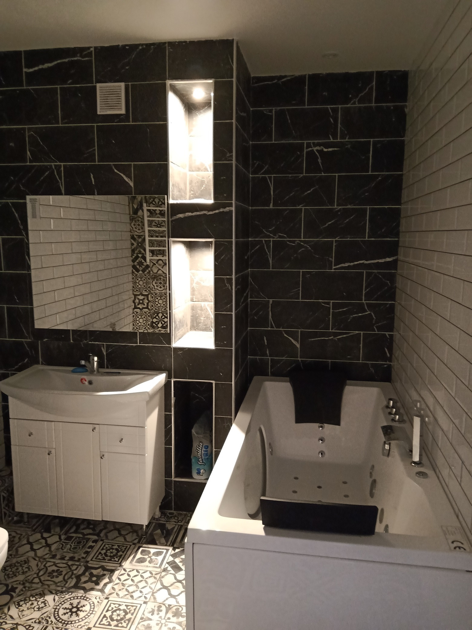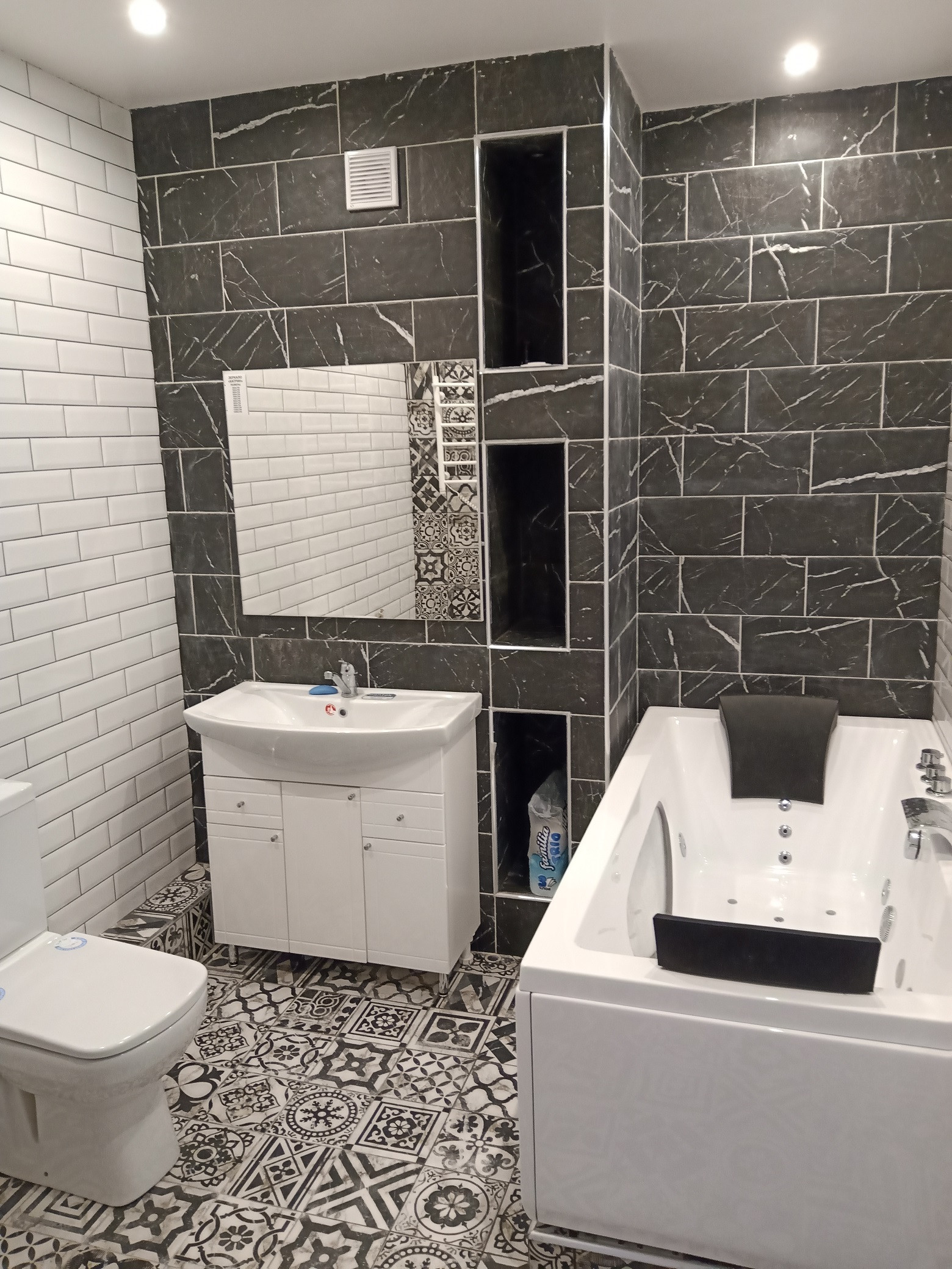 Второй – 6 кв. м, оборудован гидромассажной ванной Bellagio Luxury, унитазом, раковиной и зеркалом.