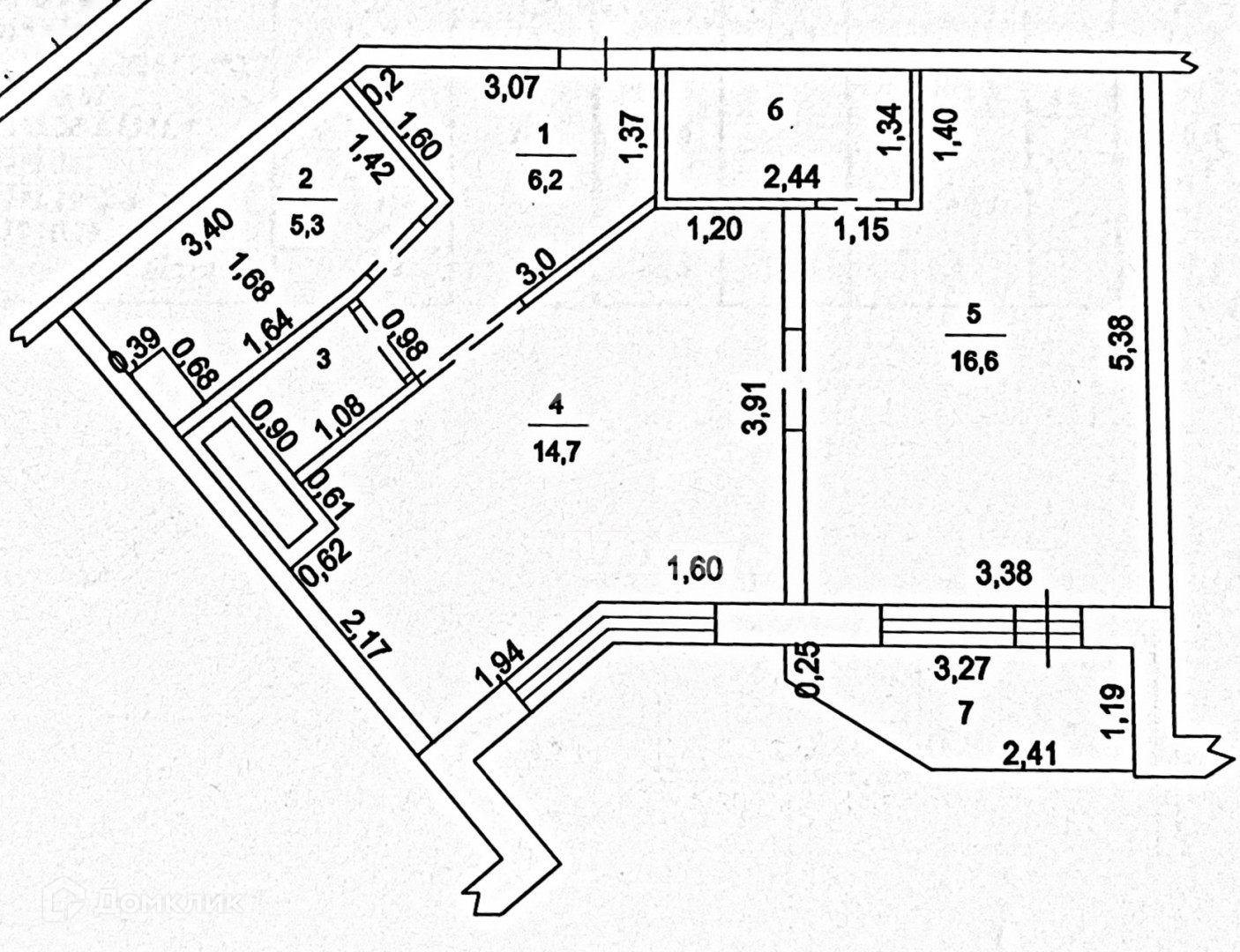 Жилая площадь 16.6 м2